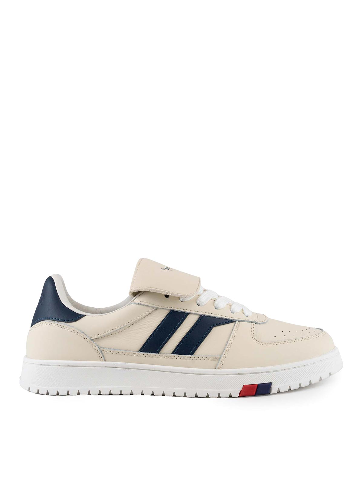 leather sneakers in leather upper contrasting leather inserts front closure with waxed laces iconic tongue with double wearability leather lining rubber sole