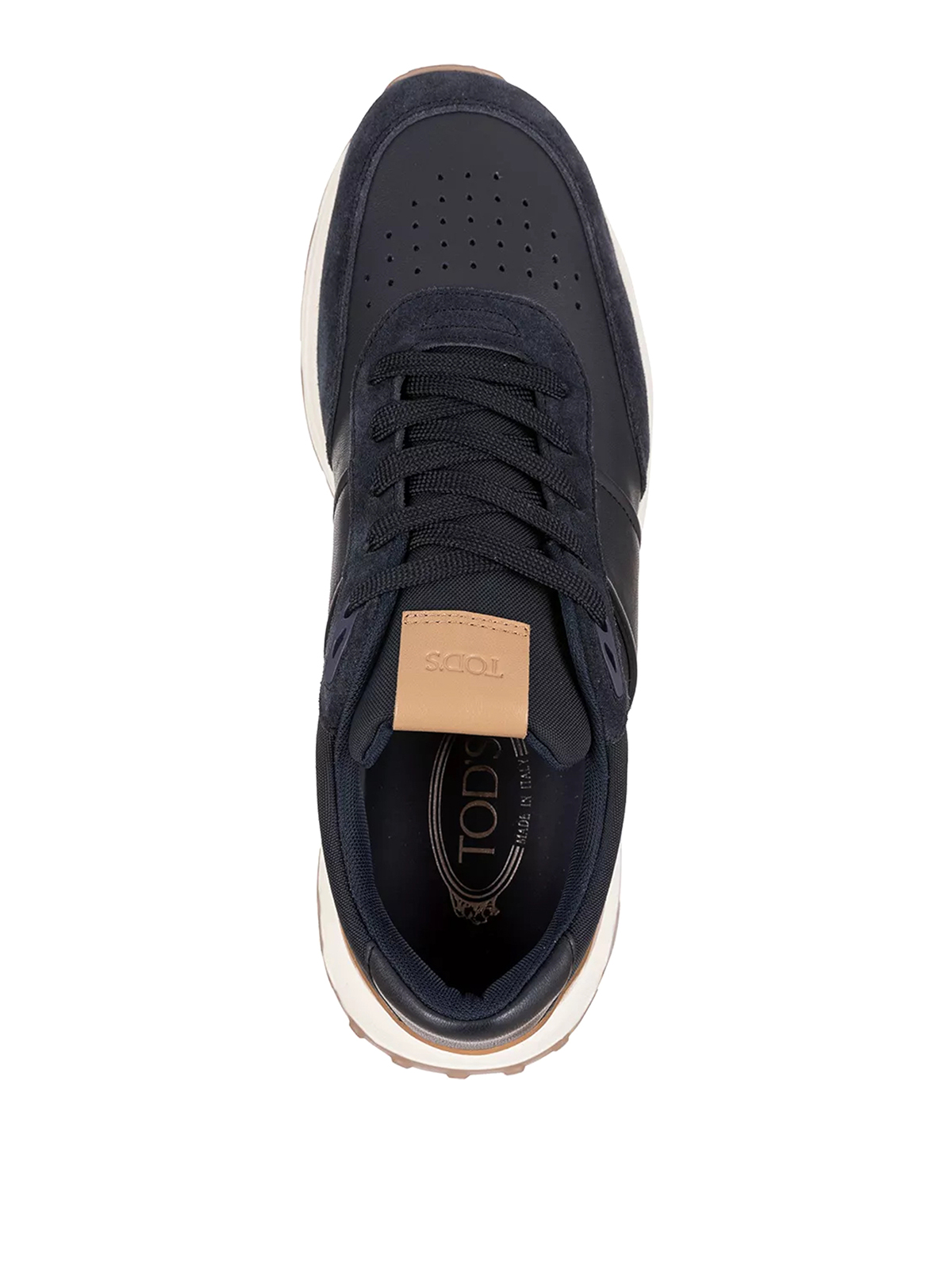 leather and fabric trainers suede and smooth leather upper technical fabric inserts punched front tod's logo embossed on the side band leather insole eva sole with rubber grommets