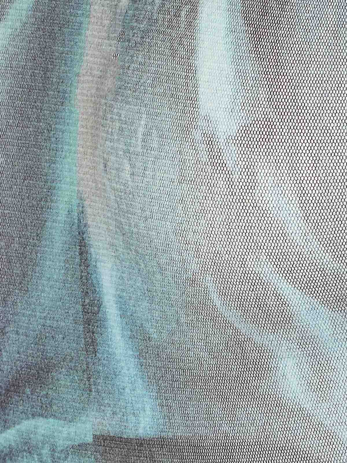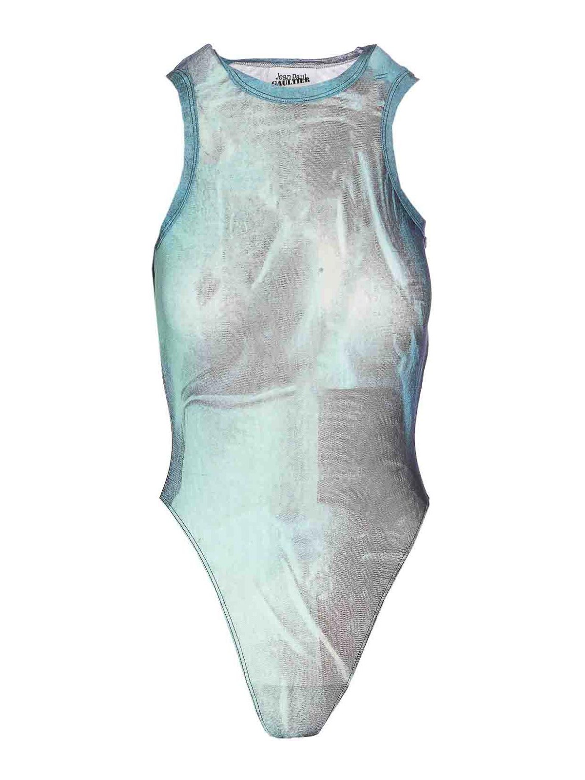 Jean paul gaultier light blue mesh body water print sleeveless hook body halter neckline