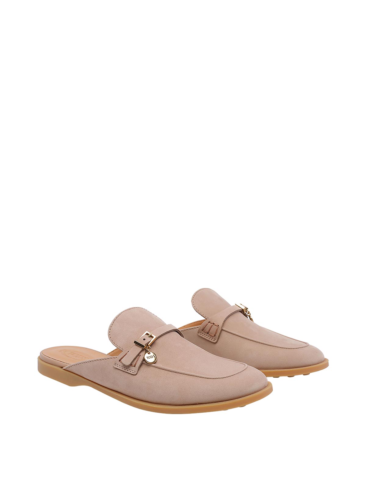 Tod's pink loafers, slip on, leather upper, buckle detail