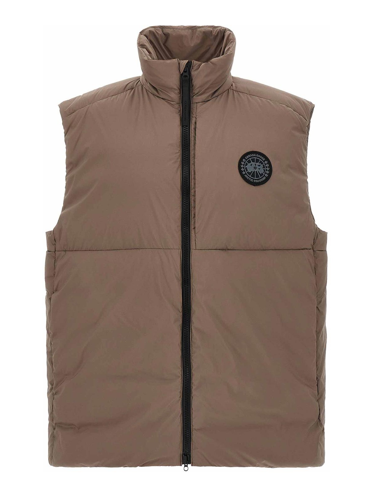 lodge' water, repellent ripstop vest with quilted matte finish and slightly goose high neck logo patch and zip pockets drawstring on the hem foldable in chest pocket