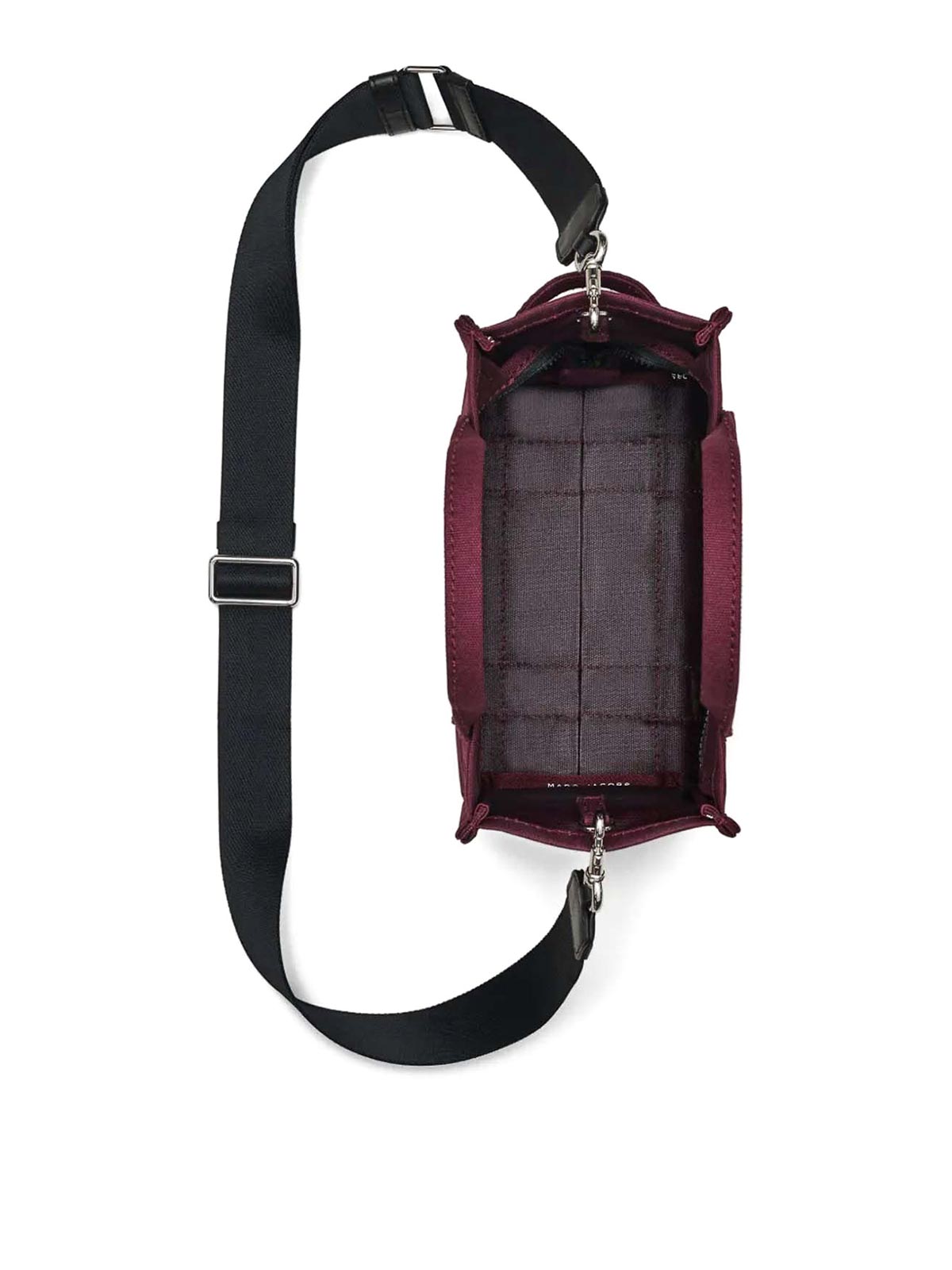Bag with front printed logo, adjustable and removable shoulder strap, top zip closure, two handles, single compartment. composition cotton 100%