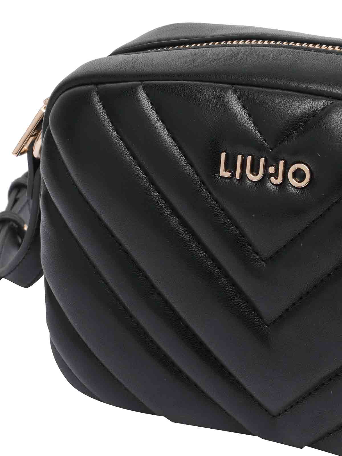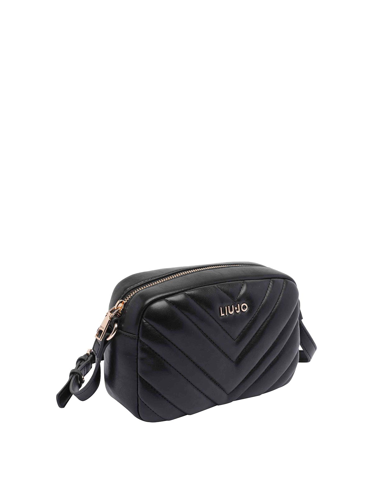 Liu jo black logo crossbody bag zip open pocket adaptable strap frontal logo