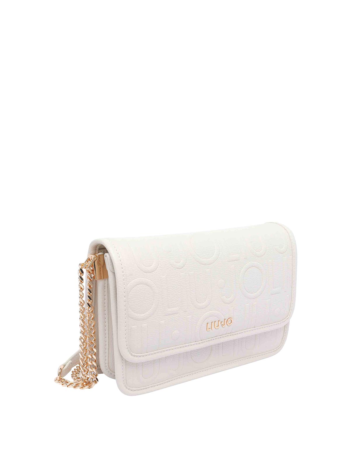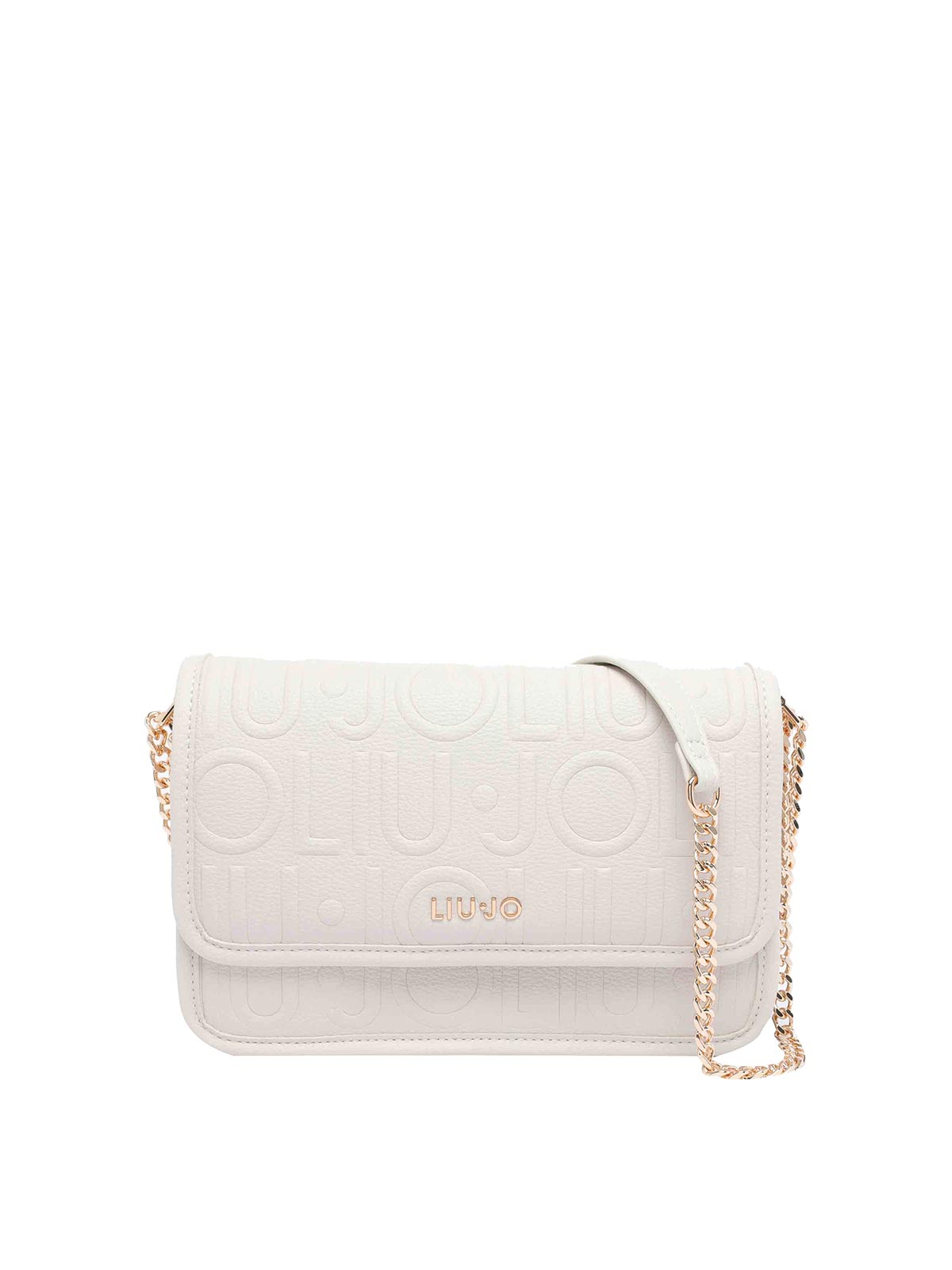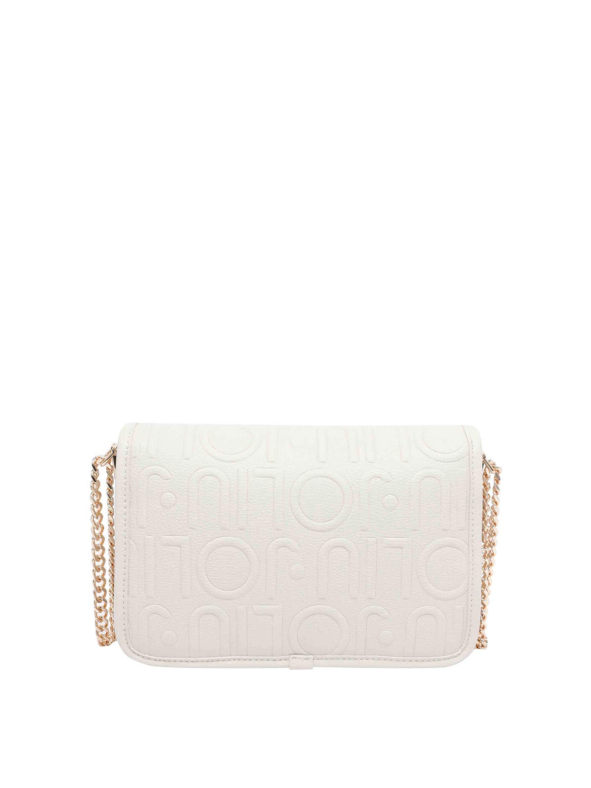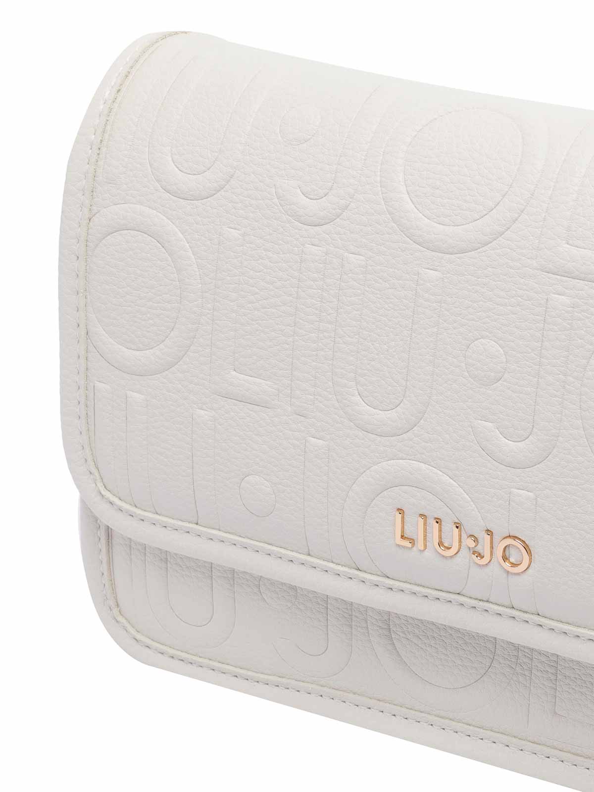 Liu jo white logo crossbody bag push lock sections slots zipped pocket adaptable sliding strap frontal logo
