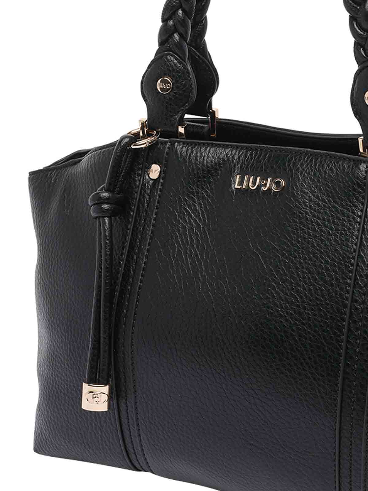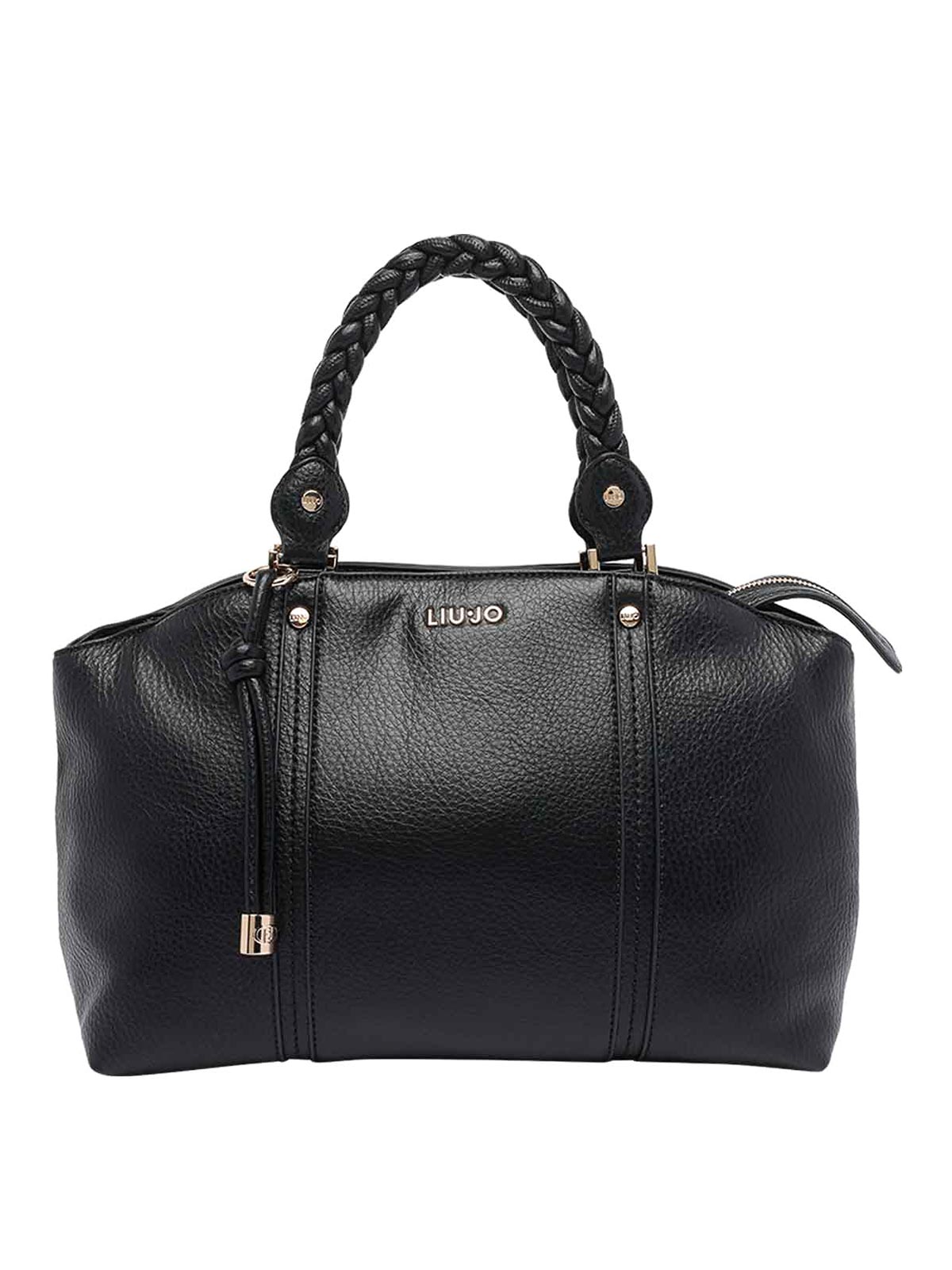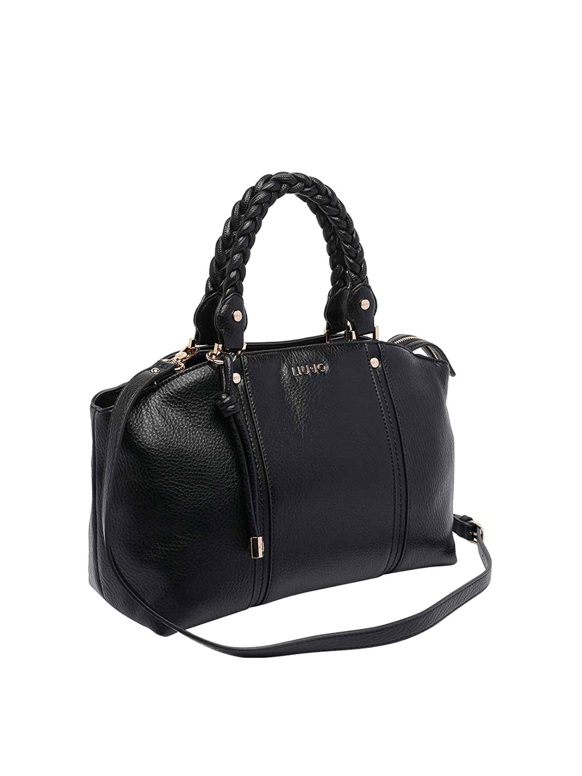 Liu jo black logo satchel bag zip pockets with magnetic zipped pocket adaptable and removable strap frontal logo