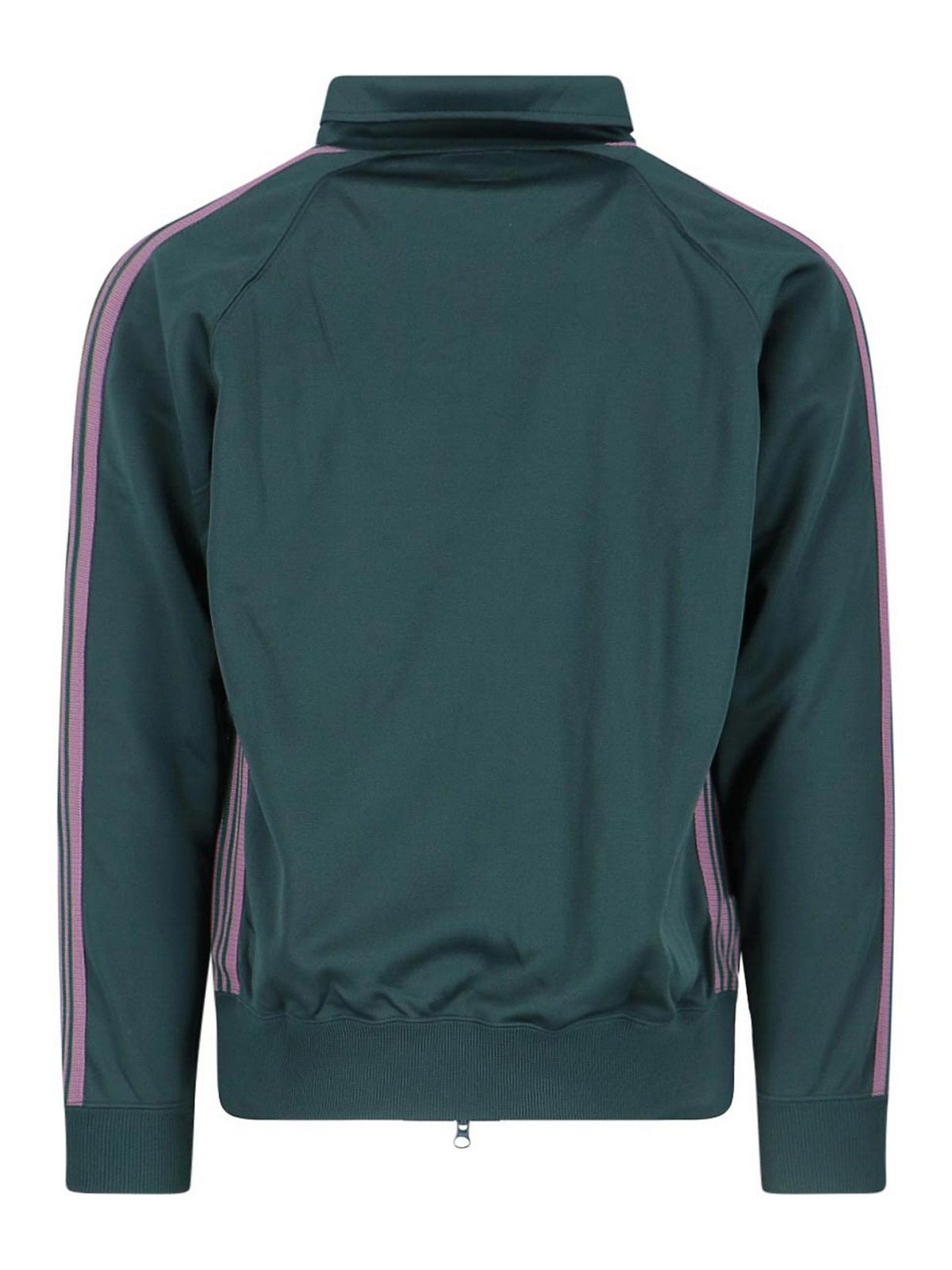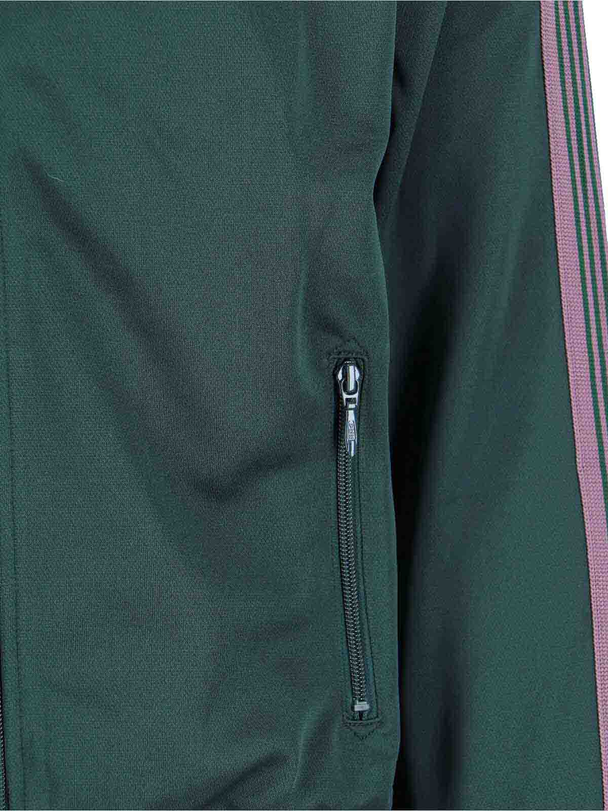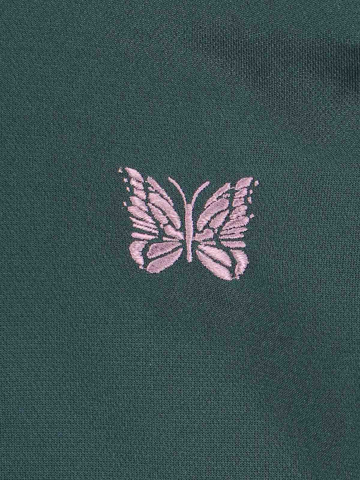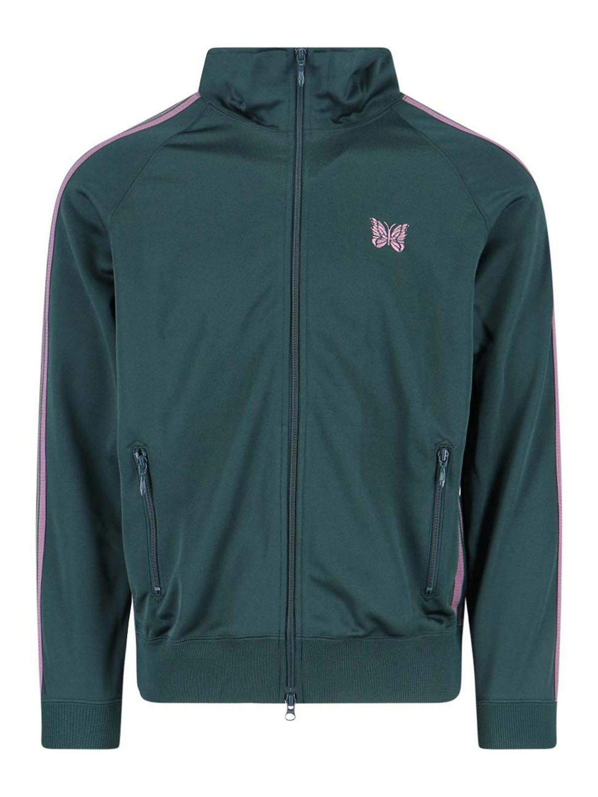 Needles logo sports jacket, in green fabric, zip closure, contrasting bow tie logo detail on the front, two front zip pockets, ribbed finishes, elasticated waist, straight hem.