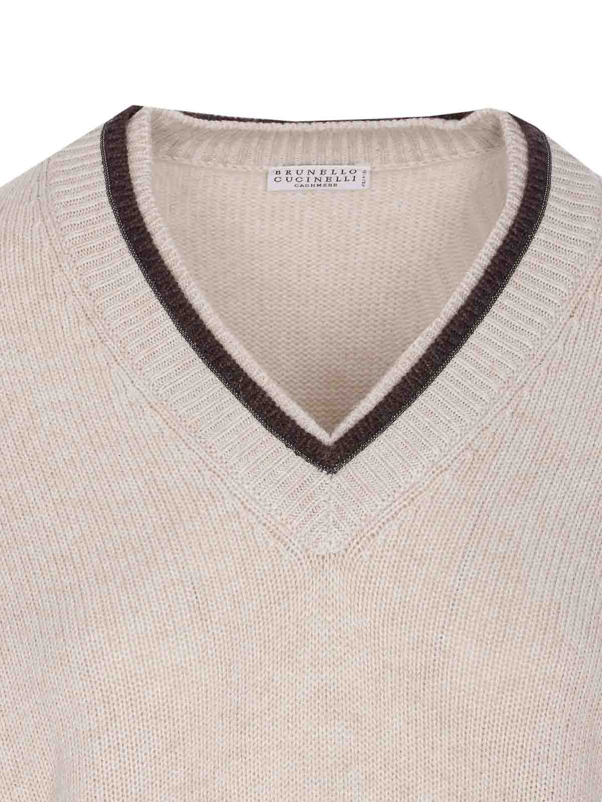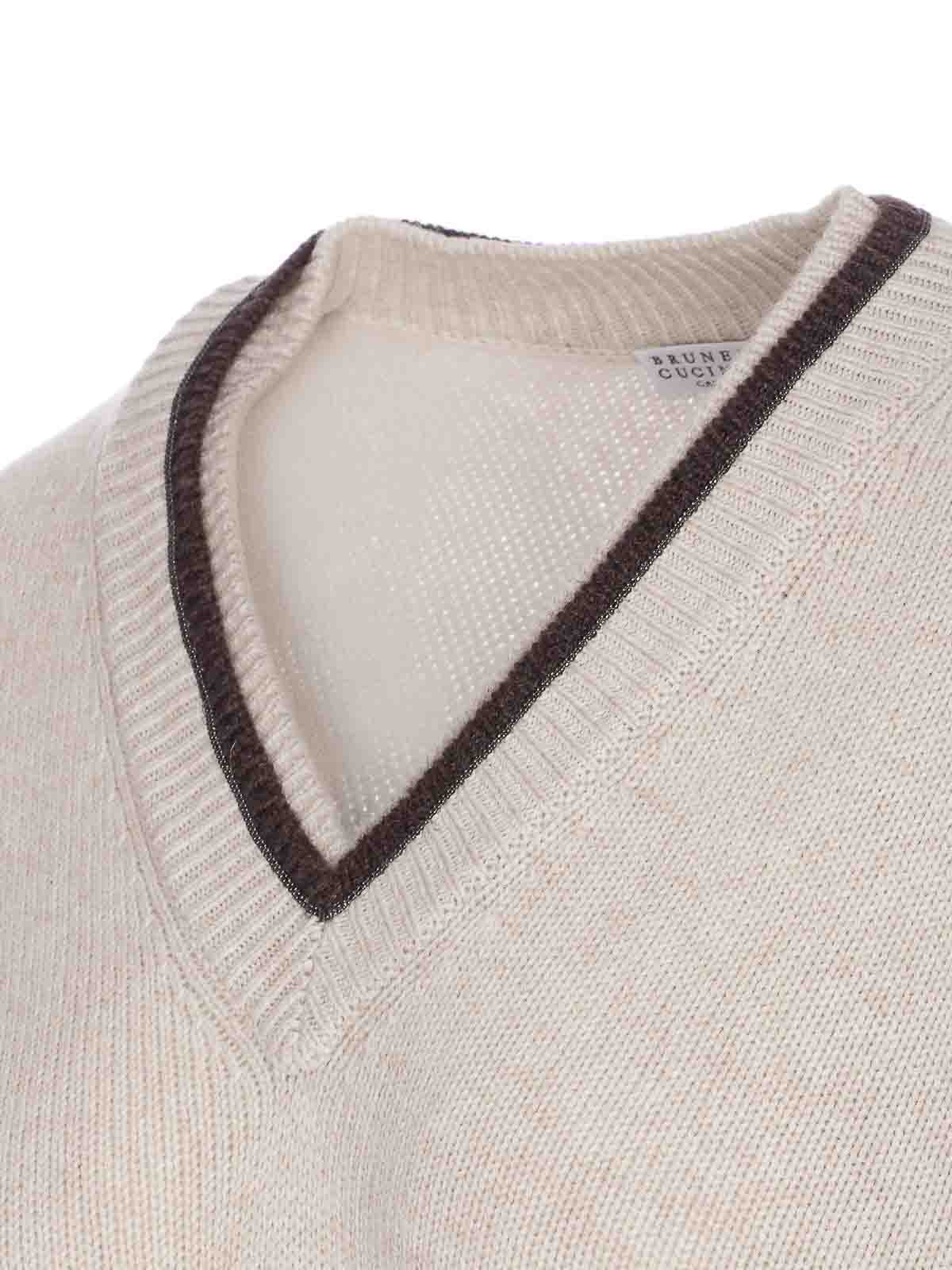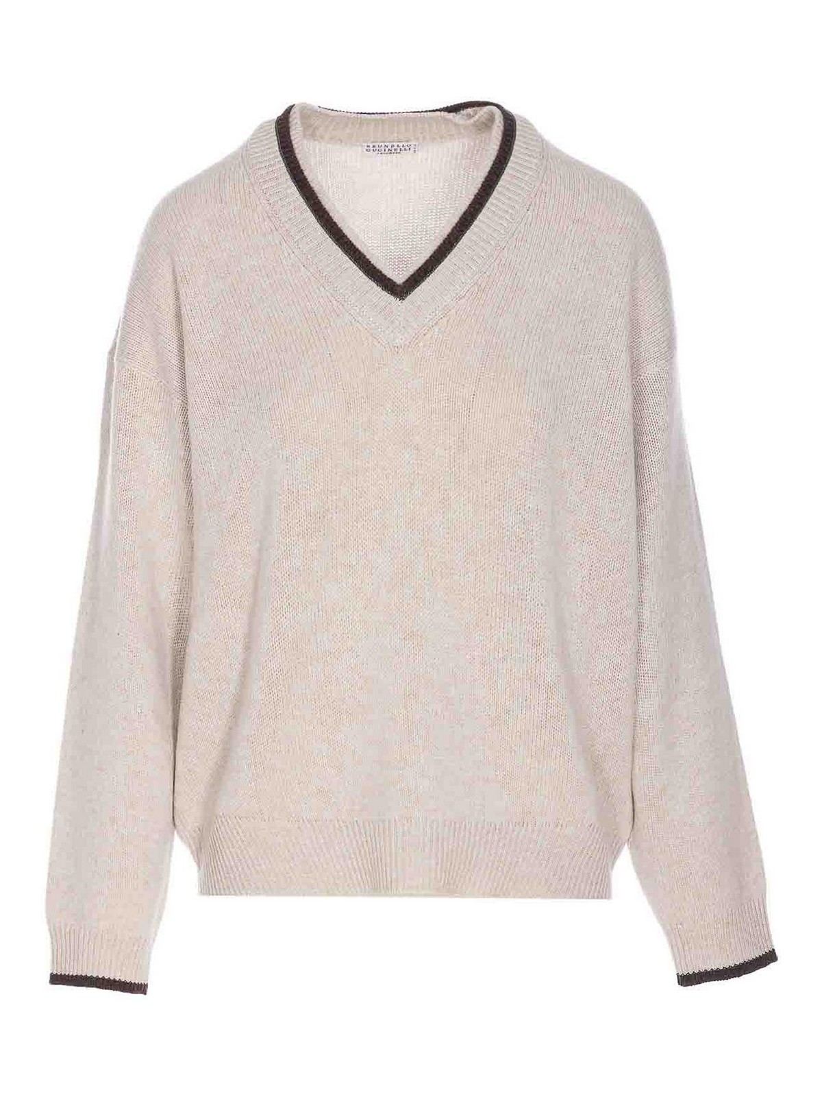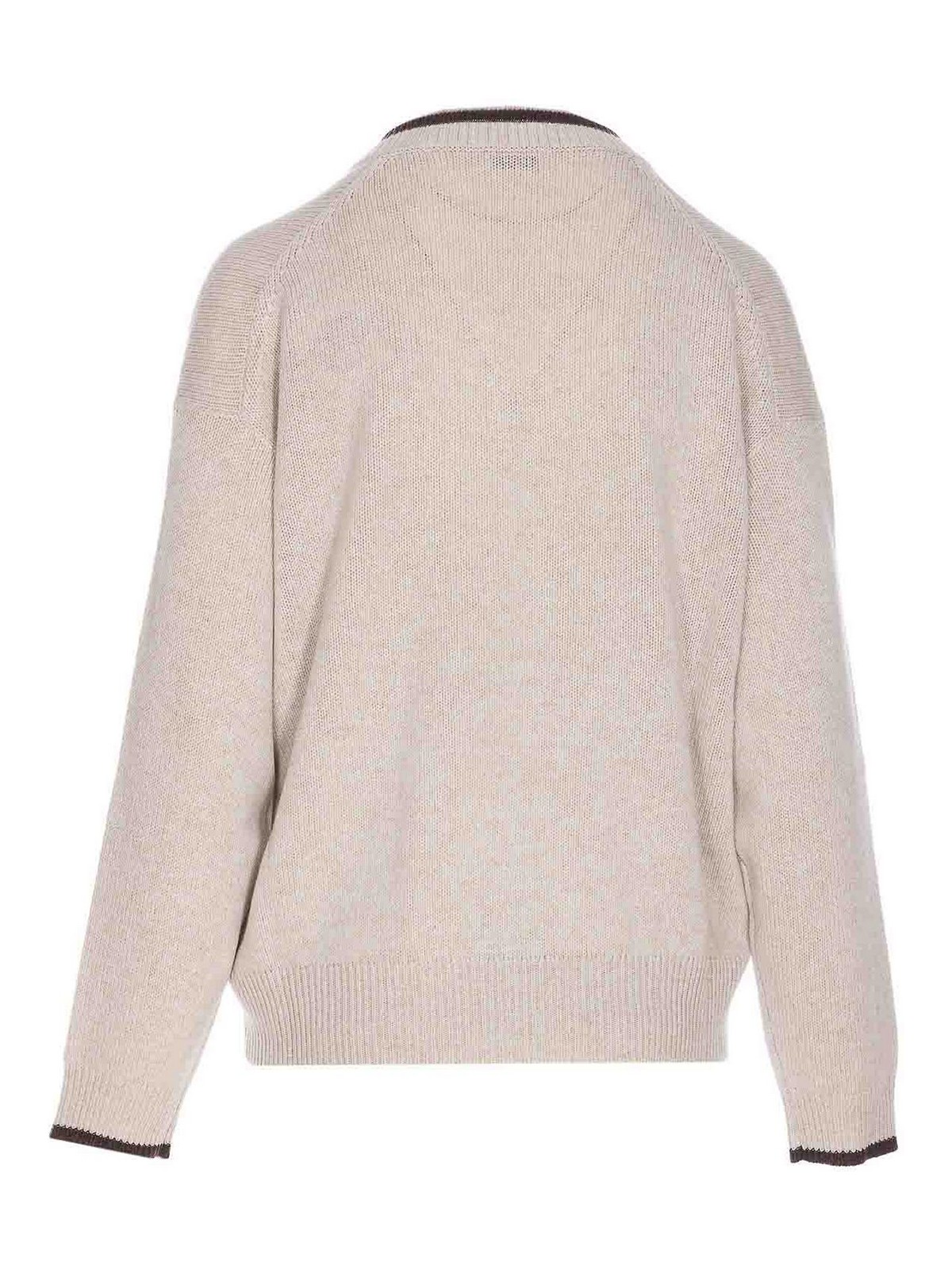 Brunello cucinelli beige sweater v neck long sleeves monile logo on the neck