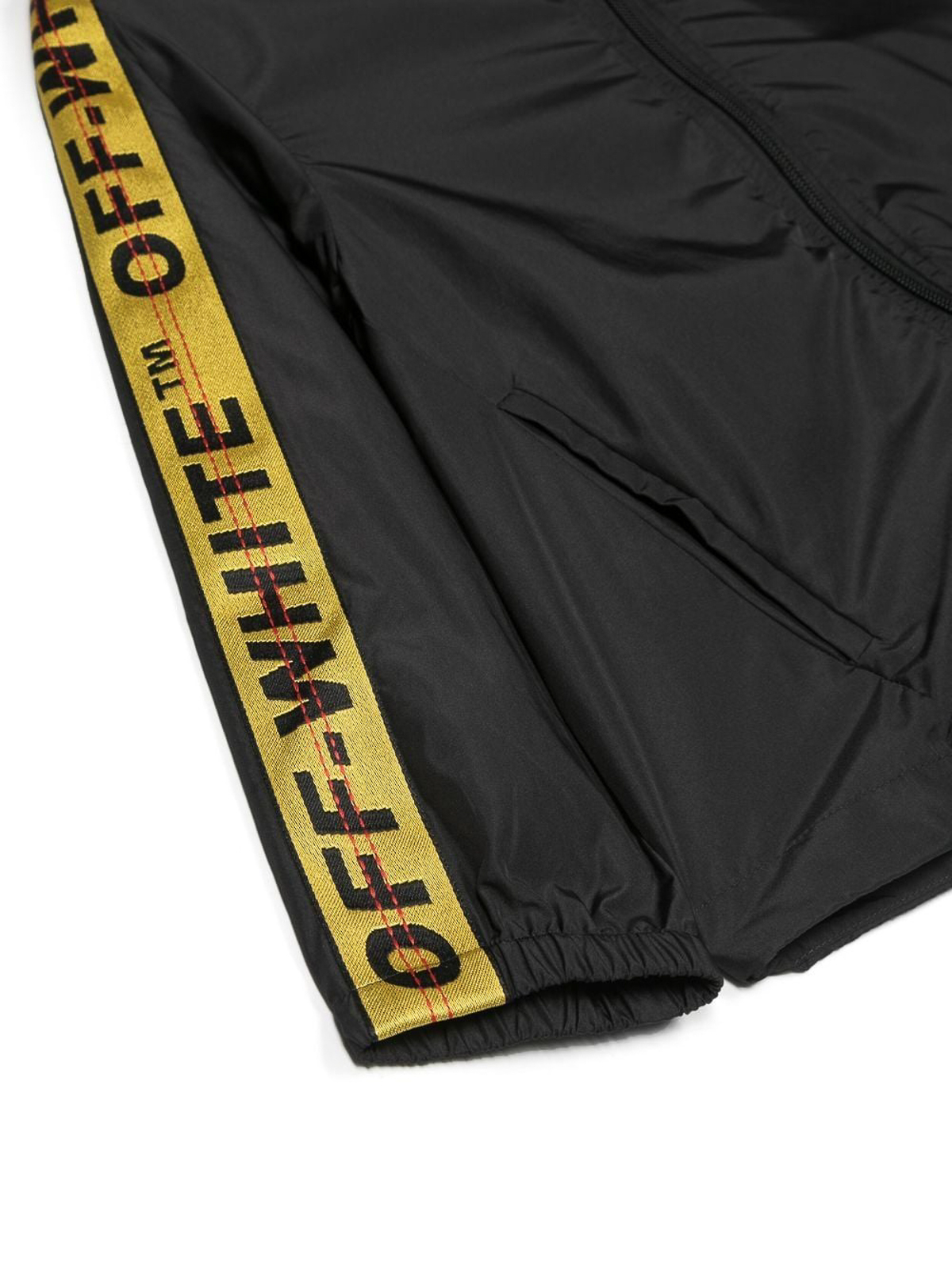 Logo-trim jacket from off-white kids featuring black logo trim funnel neck front zip fastening and long sleeves