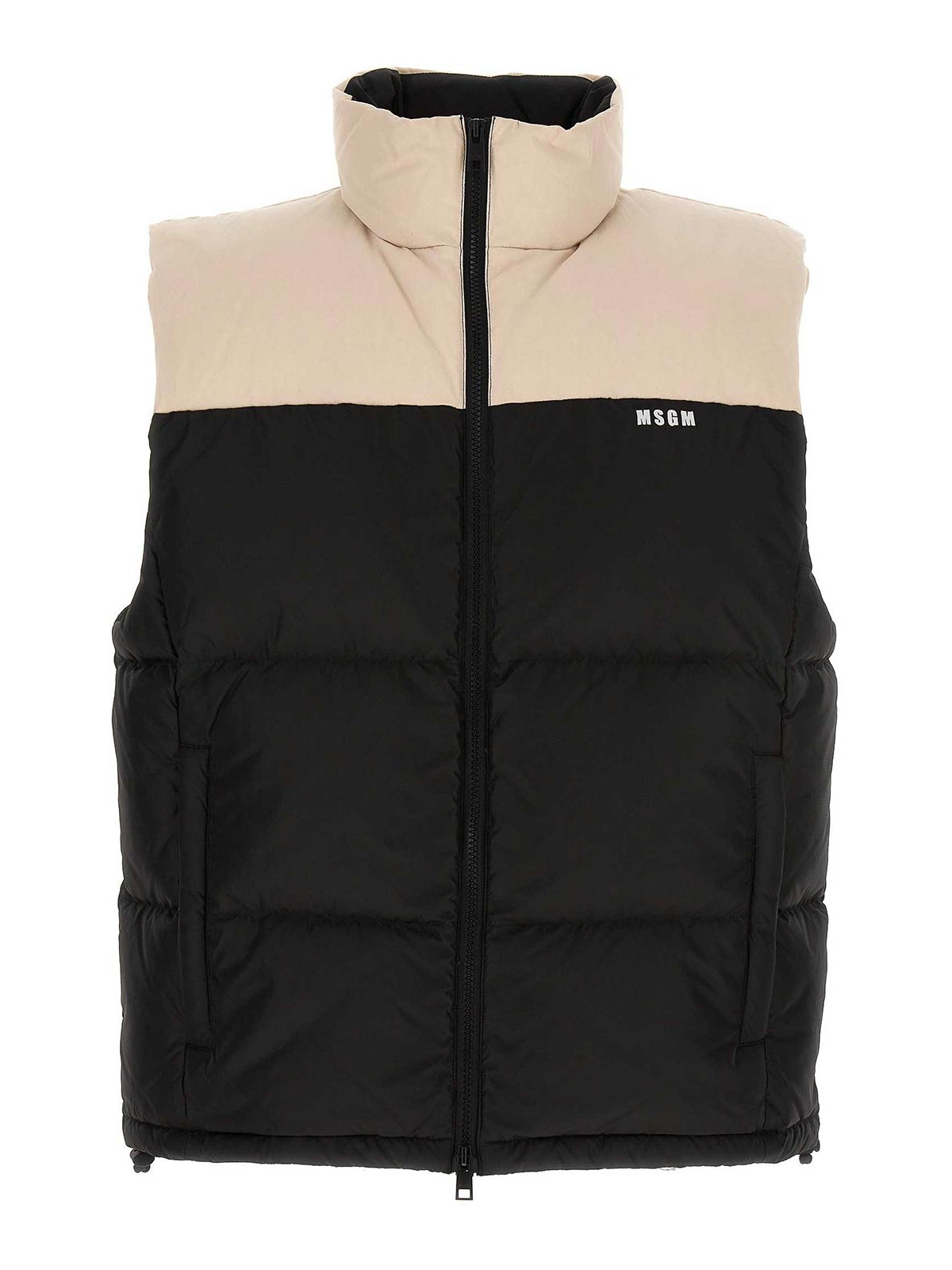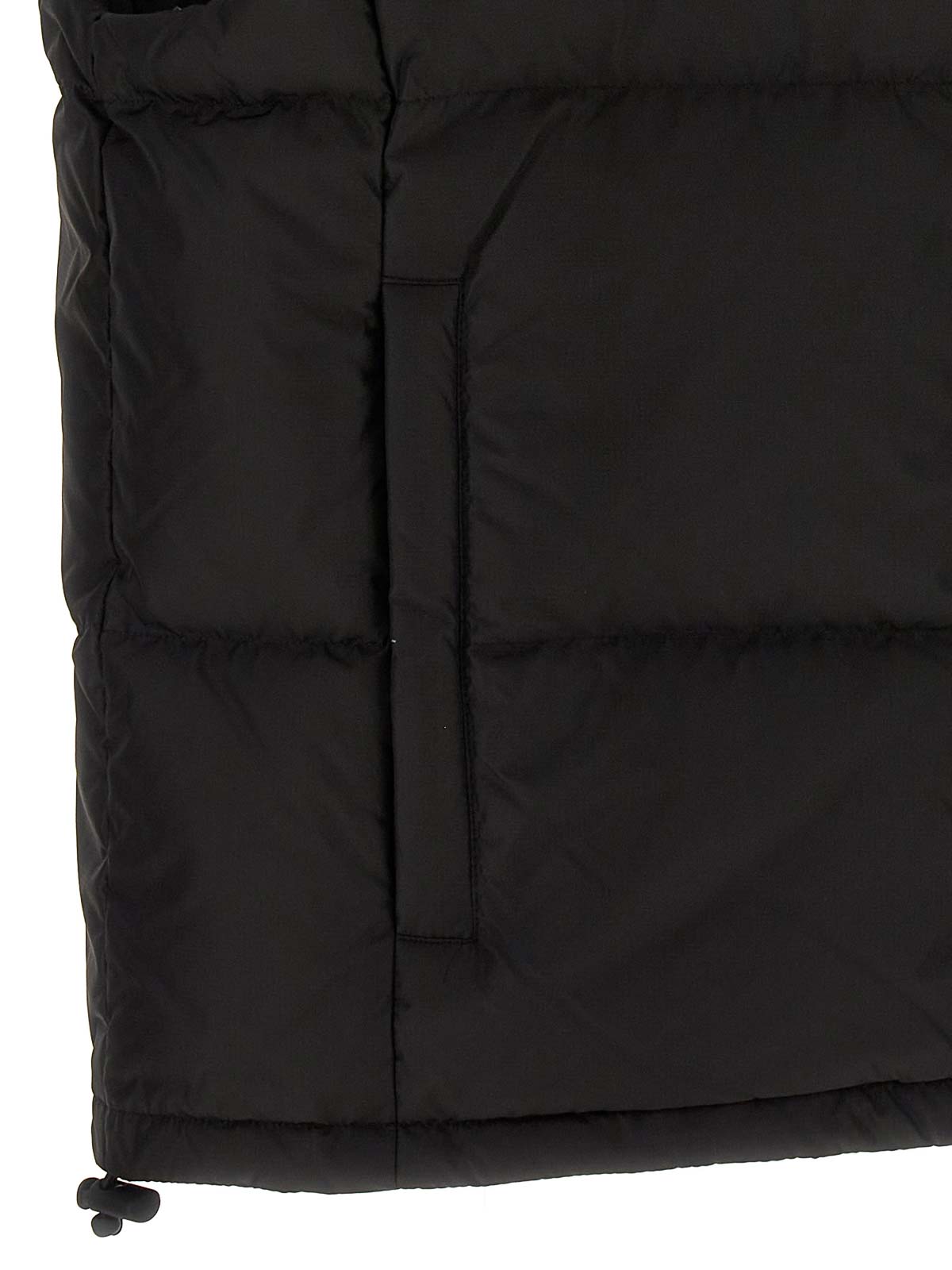 Padded vest with logo print and back patch zip pockets adjustable drawstring on the bottom of the garment