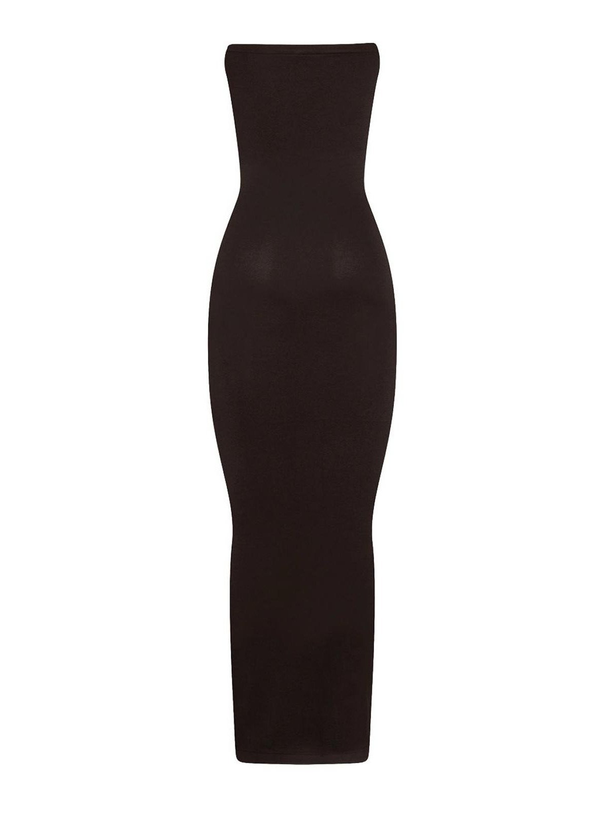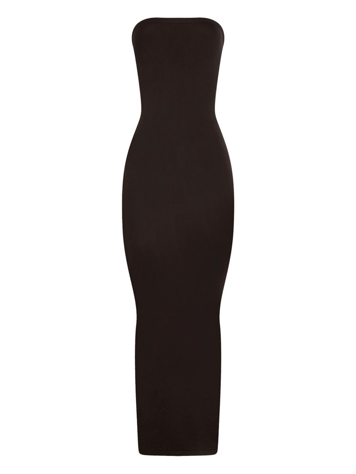 Black circular knit strapless neckline seamless construction