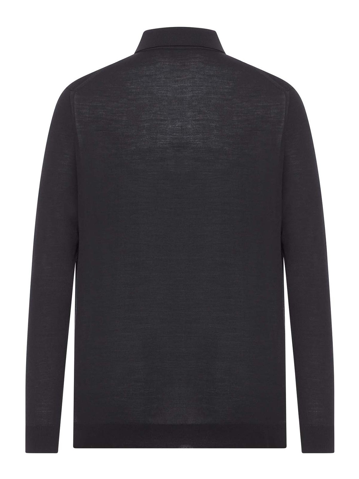 Long, sleeved polo shirt by kiton, polo collar, ribbed trim, three, button, - color black
