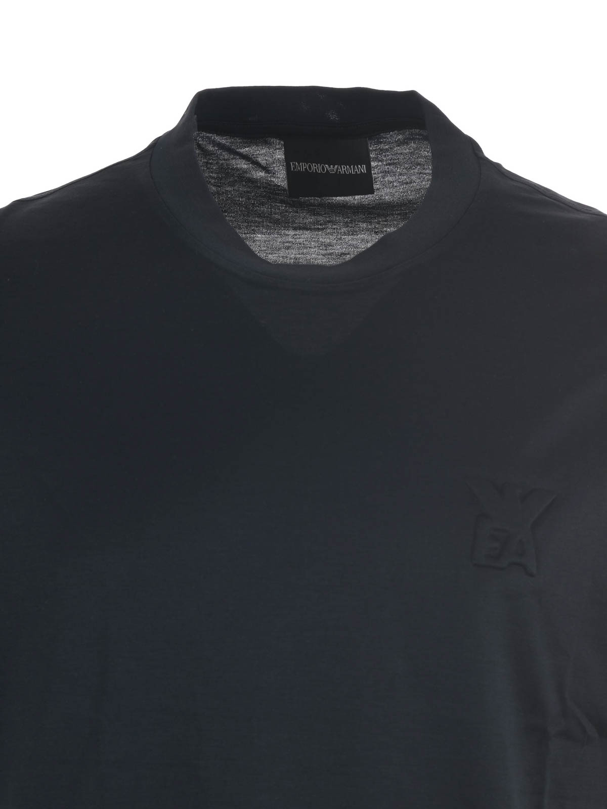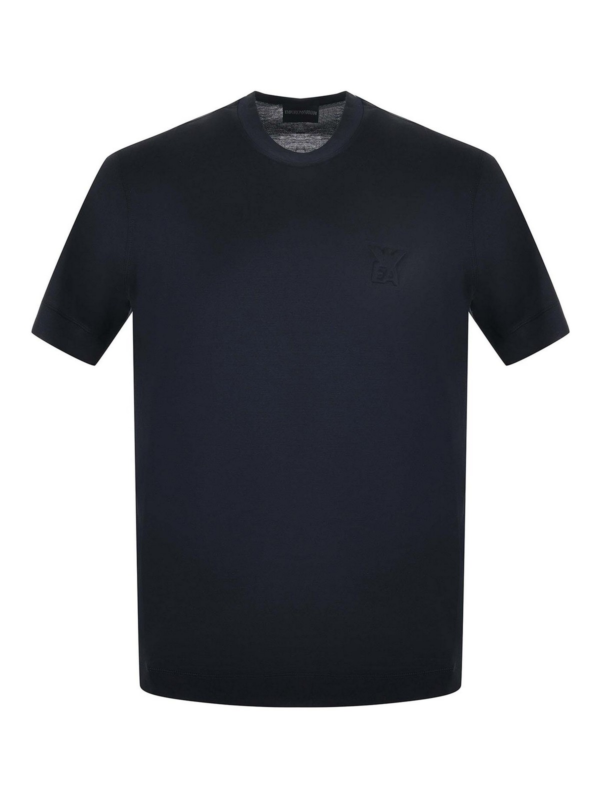Emporio armani lyocell and cotton t-shirt. crew neck. short sleeves. embossed front logo. regular fit. size shown: l 70% lyocell, 30% cotton