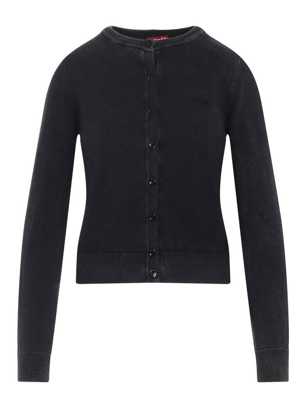 Diesel black m, bethanie cardigan pure black round neck buttoned long sleeves straight hem
