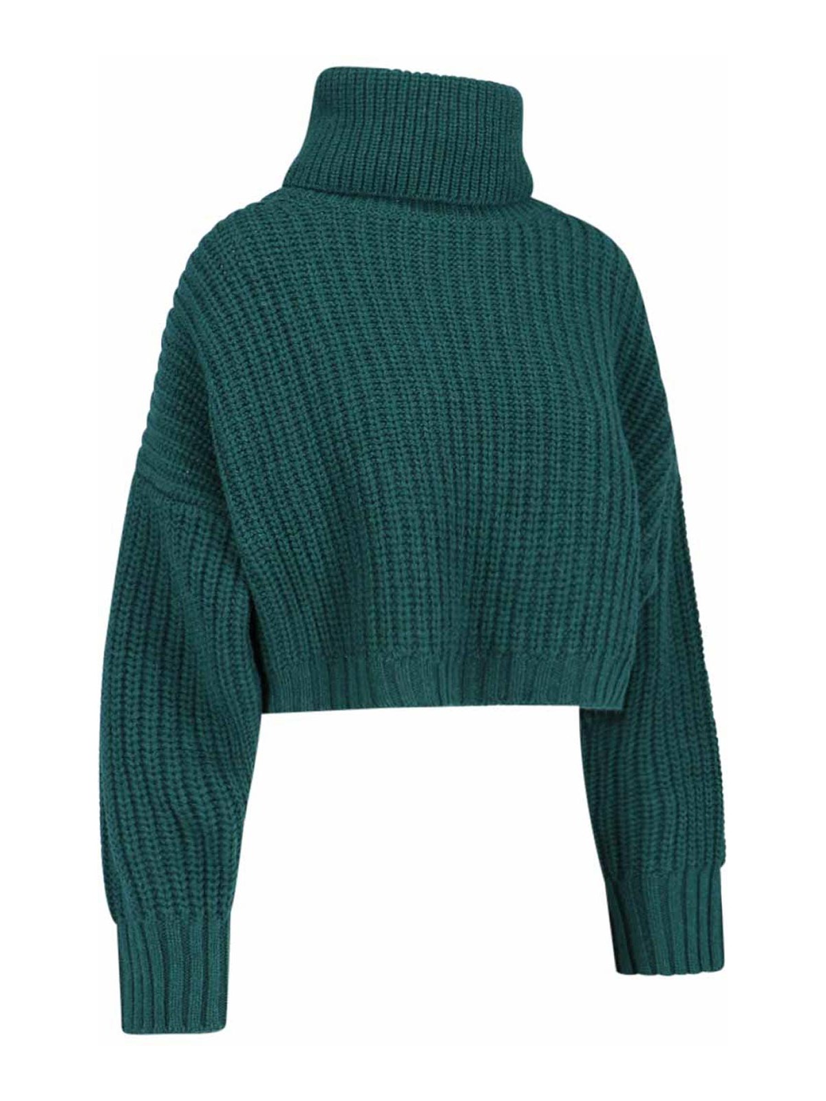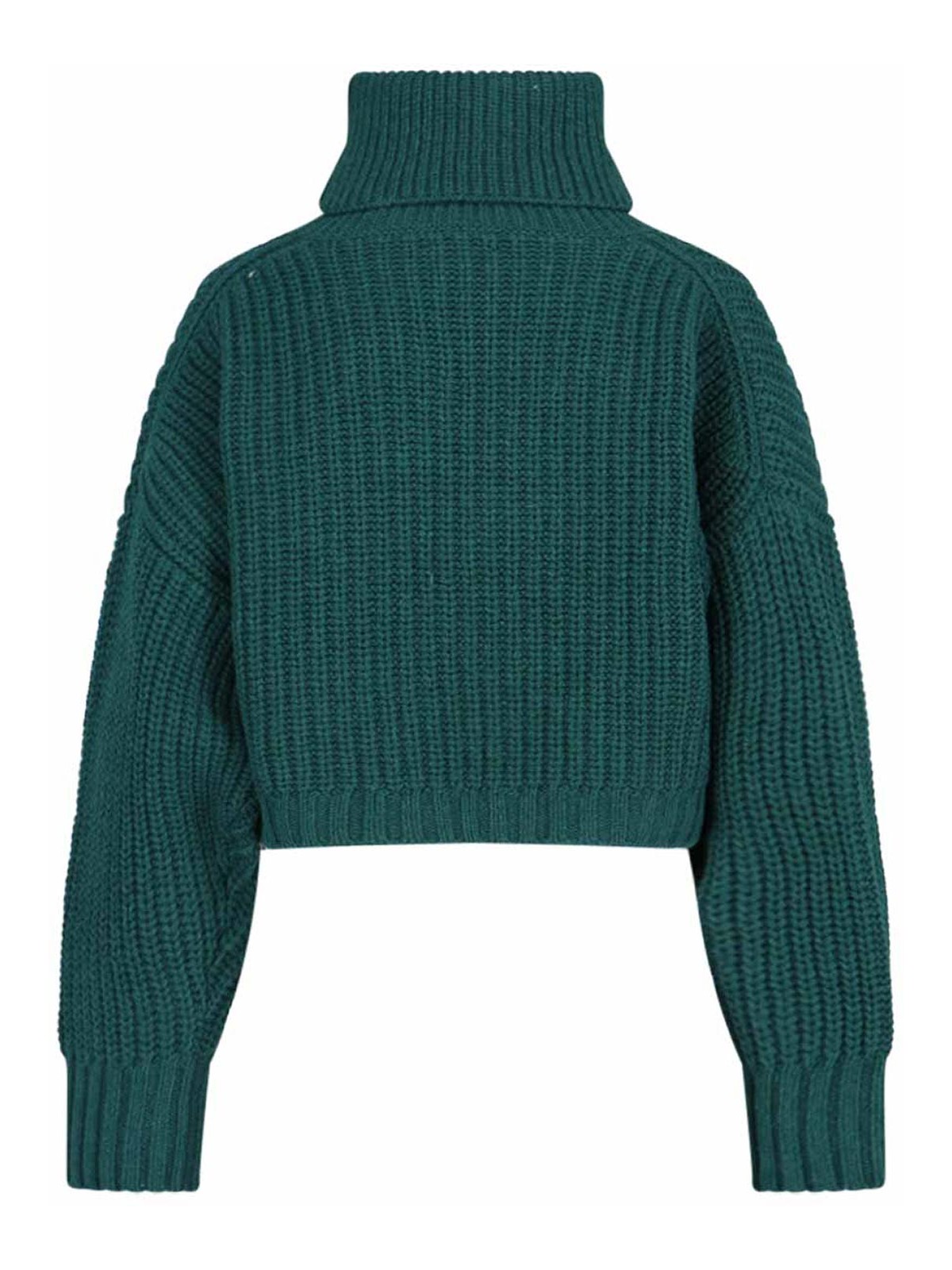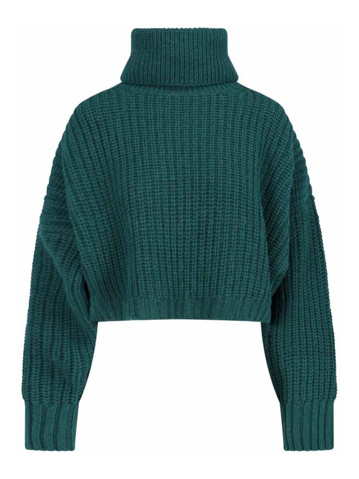 Ma'ry'ya crop sweater in wool and green ribbed high neck drop shoulders straight hem