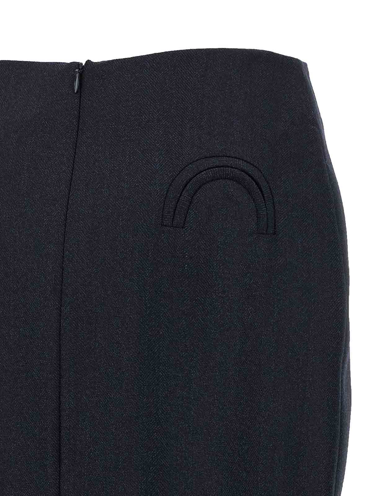 maine sussex longuette' midi skirt in herringbone patterned wool, high waist, split zip closure and 'smiley' back pocket, viscose lining with monogram print.