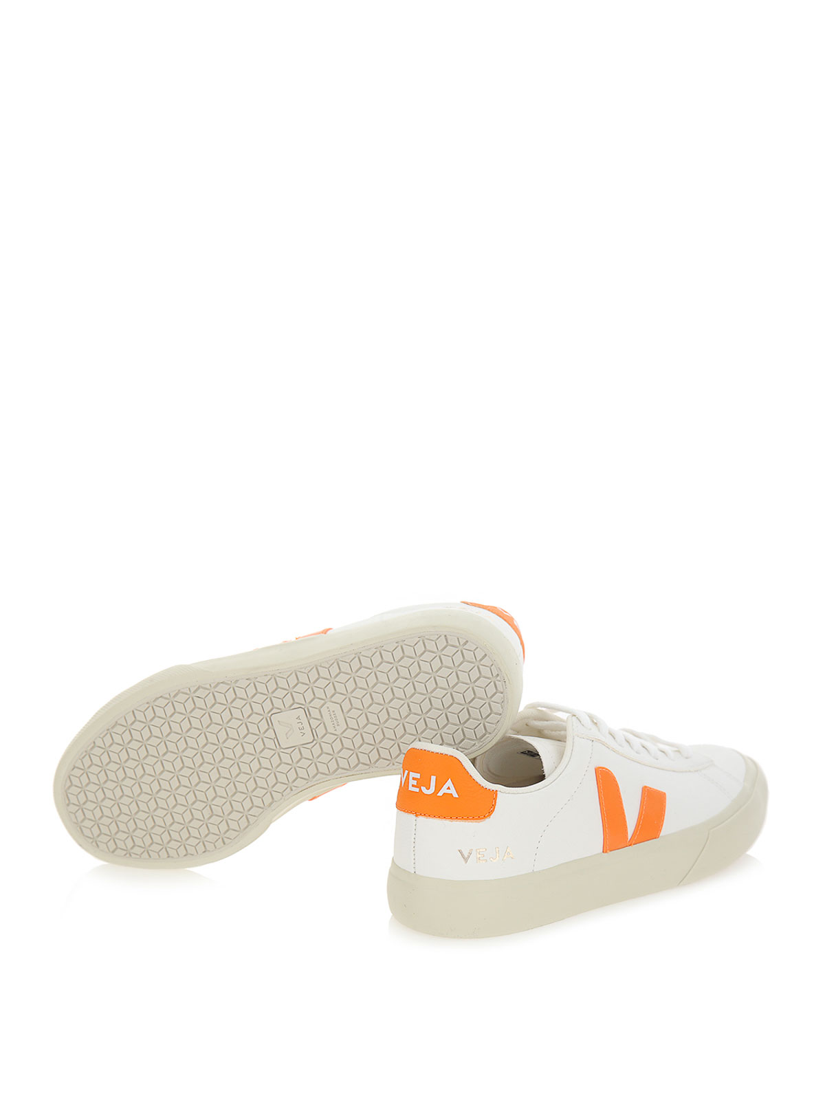 campo fury leather sneakers in multi white, campo model sneakers with round toe and classic lacing with coordinated laces. v rubberized effect logo in contrasting fluorescent orange color applied on the side. back heel in contrasting color leather with printed logo. logo engraved on the front tongue and on the back heel. removable insole and rubber sole. these shoes were made with an innovative tanning process, free of chromium, heavy metals or dangerous acids, limiting the use of chemicals and reducing energy consumption., regular fit, round toe, coordinated laces, rubberised logo, leather heel, removable insole, rubber sole, colour: white, multi, 100% chrome-free leather.