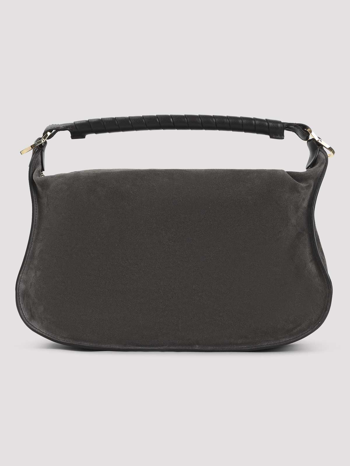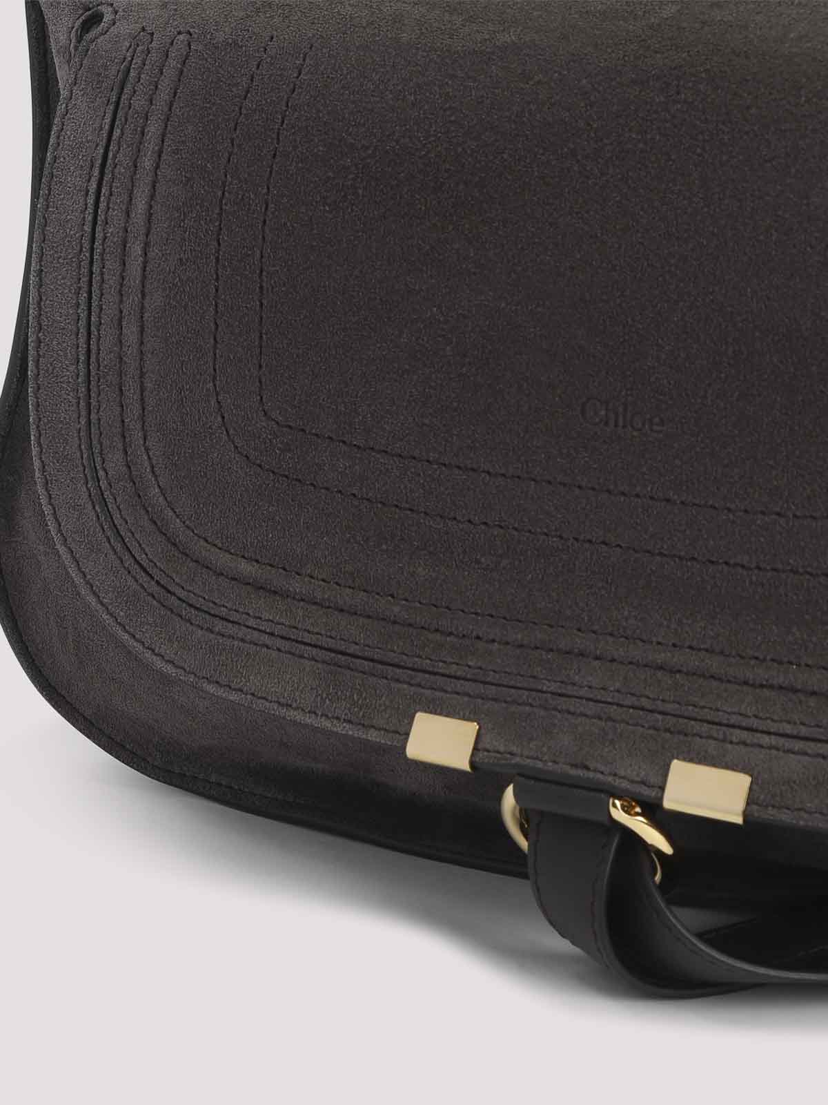 Chloe kohl brown suede calf leather marcie bag. pure kohl brown suede calf leather bag, top handle, top zipped fastening, front flap pocket, front engraved logo, front gold-tone buckle, front tonal adjustable strap, adjustable and detachable shoulder strap, one main compartment, gold-tone hardware.