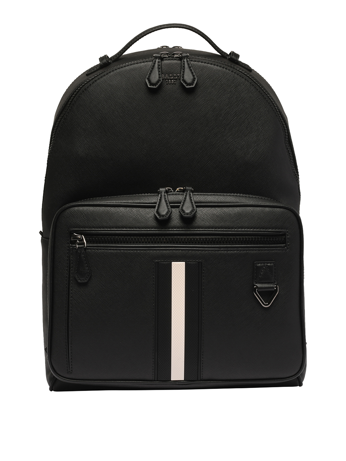 Bally black mavrick backpack zip closure compartment inner zip pocket open pockets one pocket for laptop external zip pockets one handle adjustable shoulder strap logo