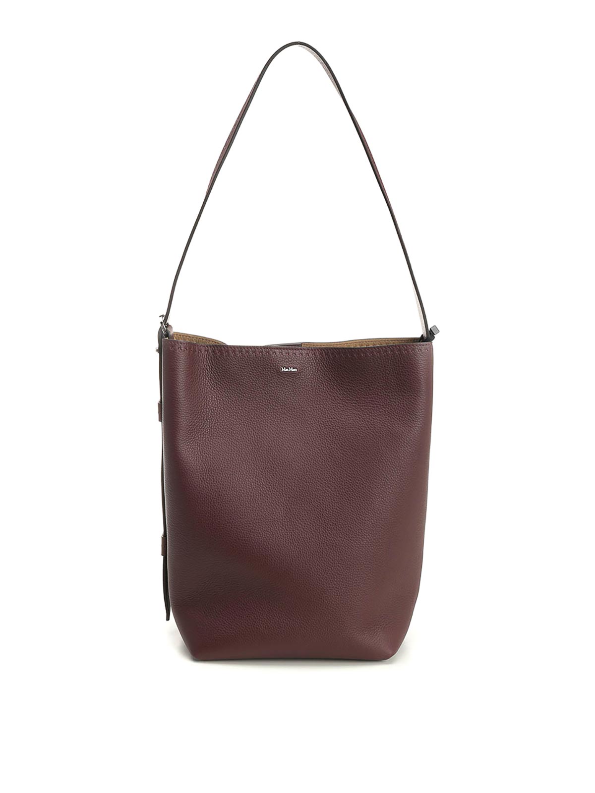 Medium archetipo bag in semi-glossy natural grain calfskin by max mara, with removable zip pouch to be used as a purse, internal ring to attach small leather goods, leather bottom with metal feet and embroidered monogram m in thread, adjustable shoulder strap, with hidden holes under the loop, magnetic button closure