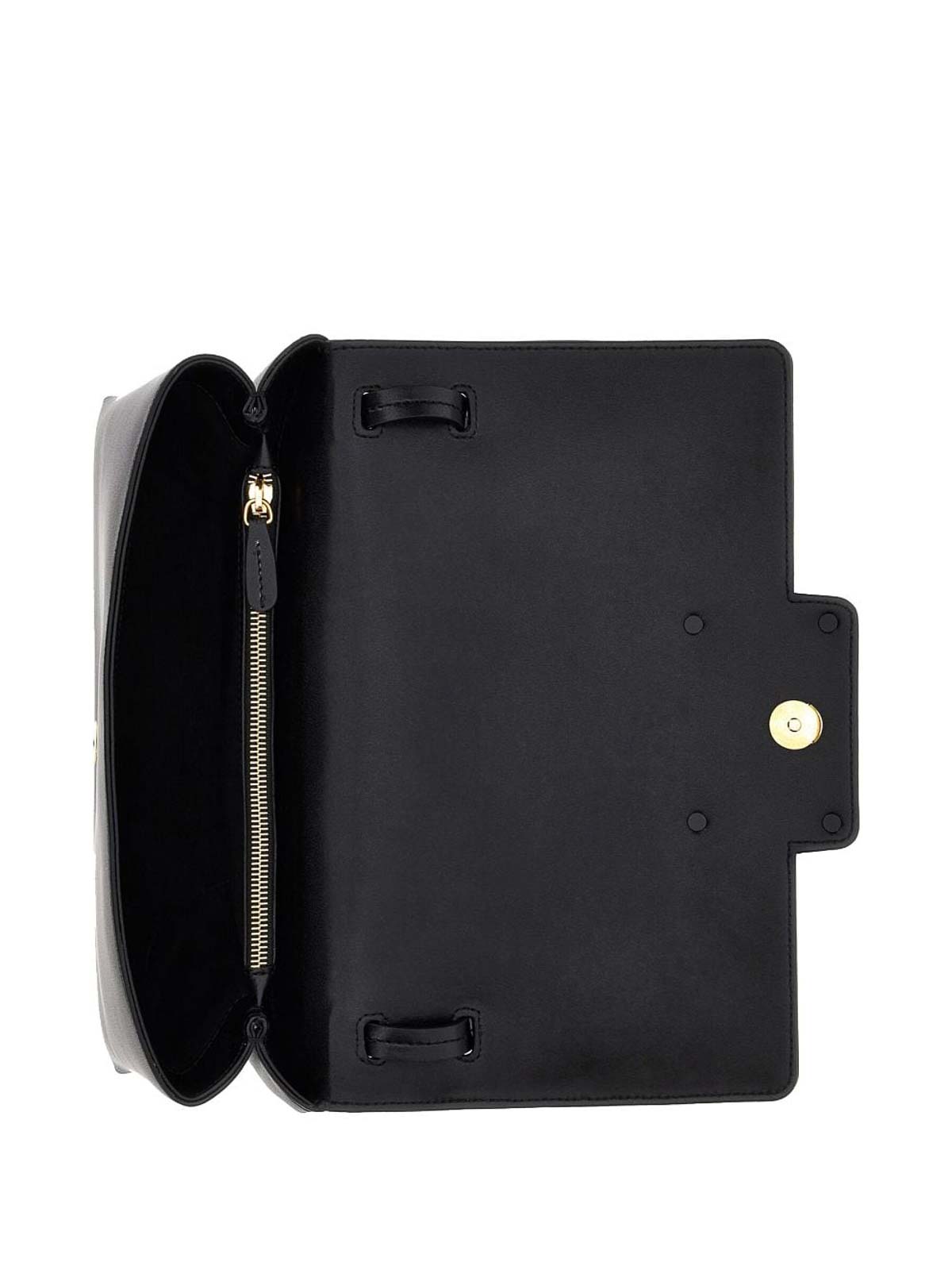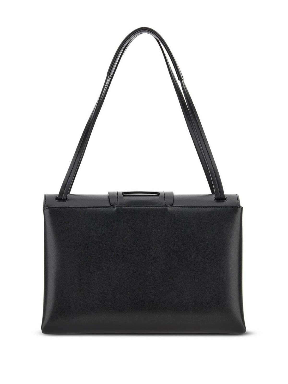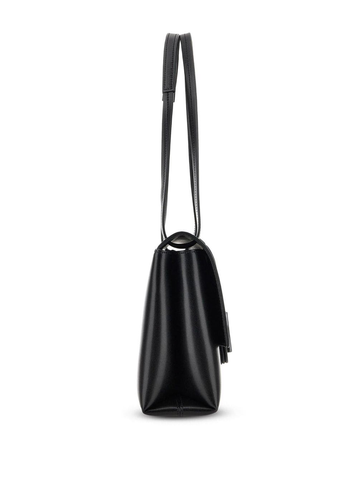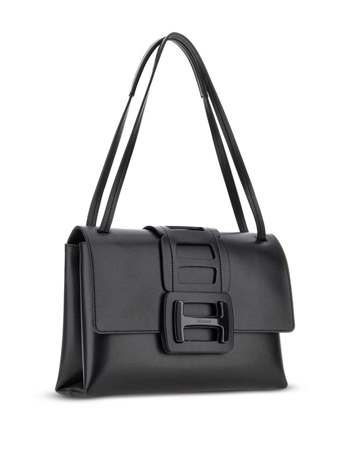 Black medium h-bag logo-plaque shoulder bag from hogan featuring black leather smooth grain signature h logo tonal logo plaque two long top handles foldover top with magnetic fastening internal zip-fastening pocket and main compartment