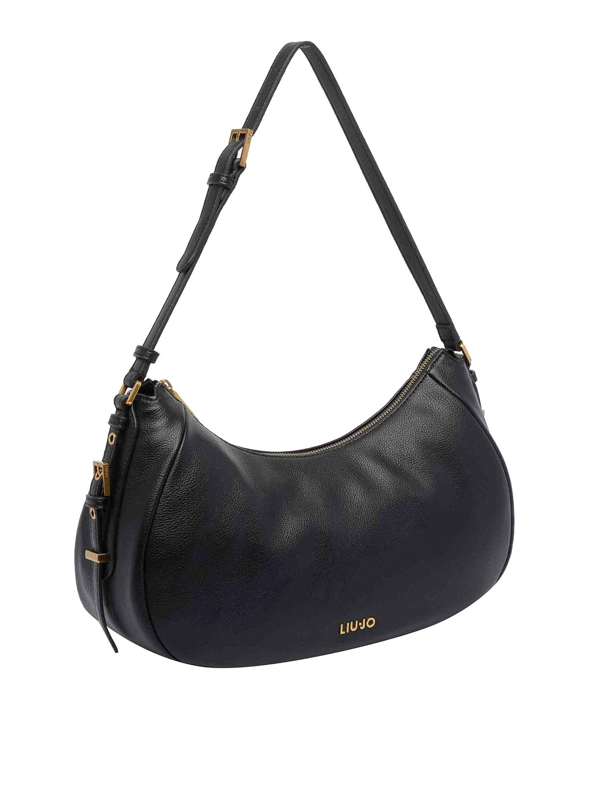 Liu jo black medium hobo bag zip zipped pocket adaptable strap frontal logo
