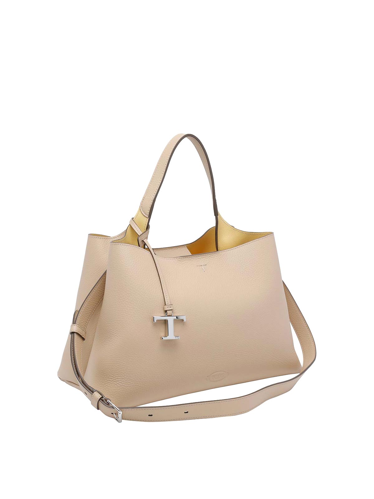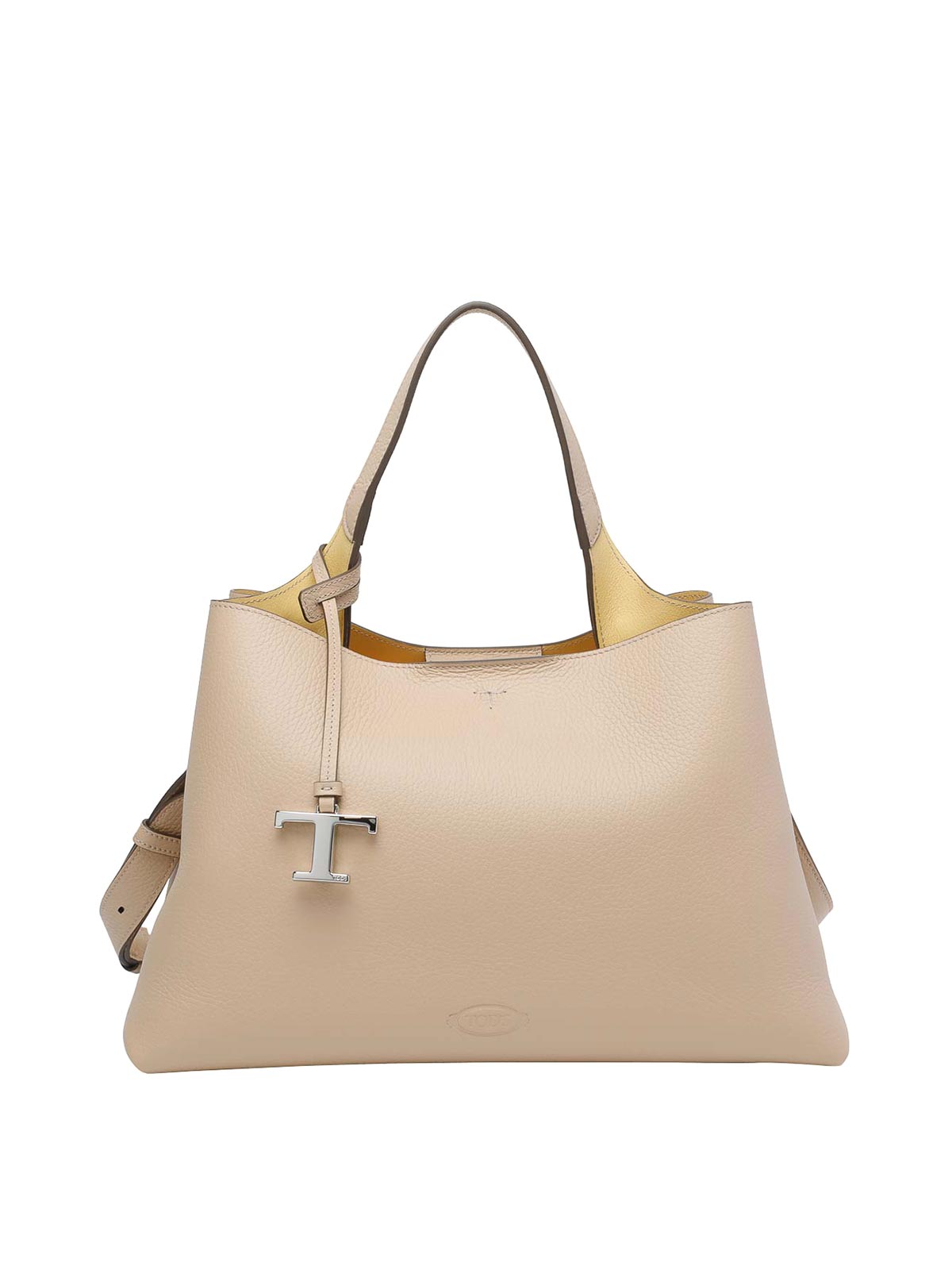 Tod's naturale medium leather handbag, carabiner closure, 2 sections, 2 inner zipped pockets, adaptable strap, leather model