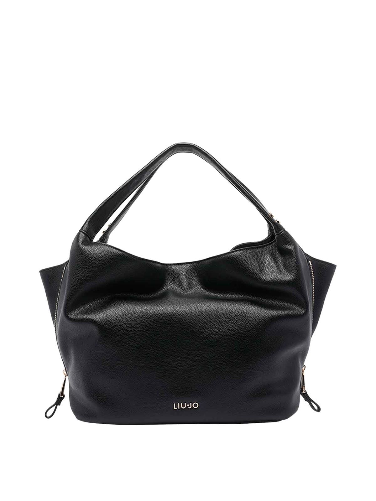 Liu jo black medium logo hobo bag magnetic zipped pocket and one open pocket adaptable and removable strap shoulder straps