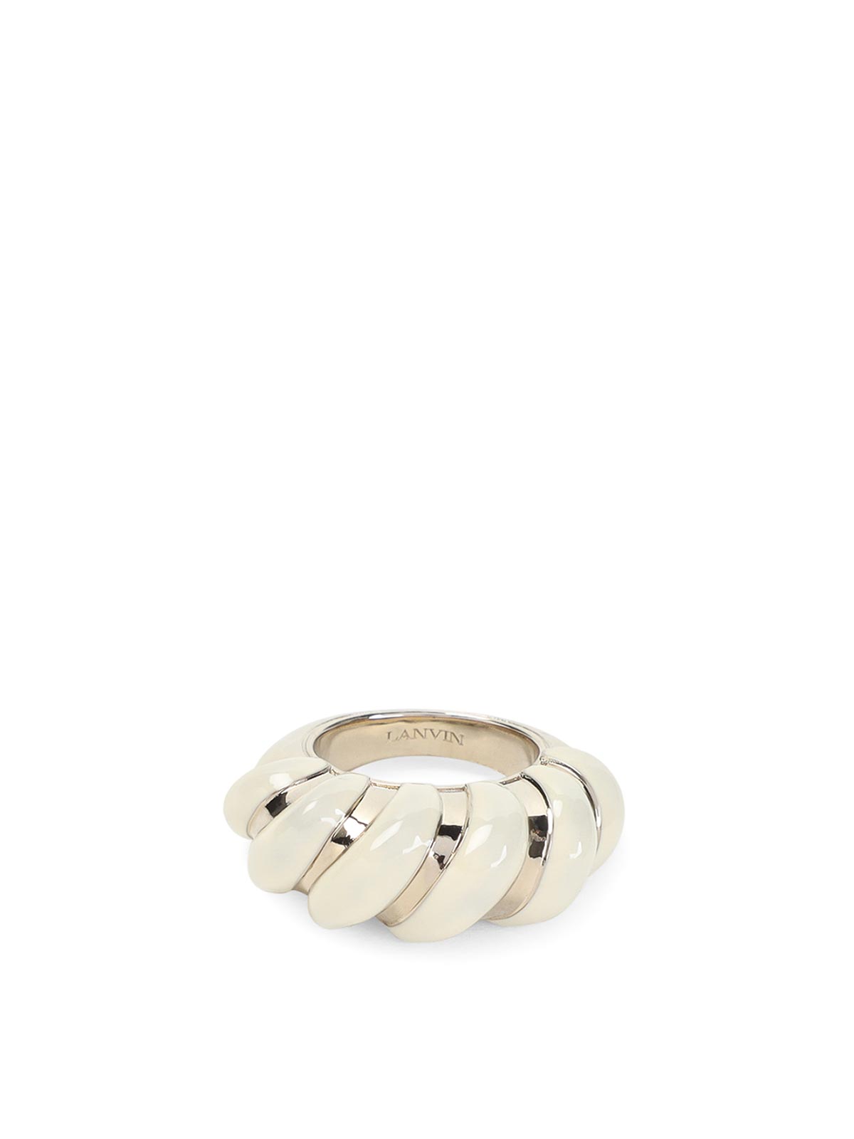 Lanvin melodie candy off white brass ring. golden-toned brass, white enameled details, candy inspired design.