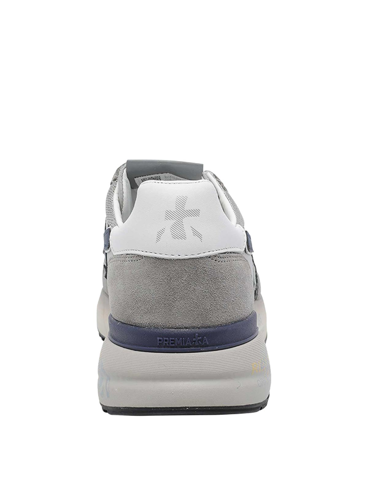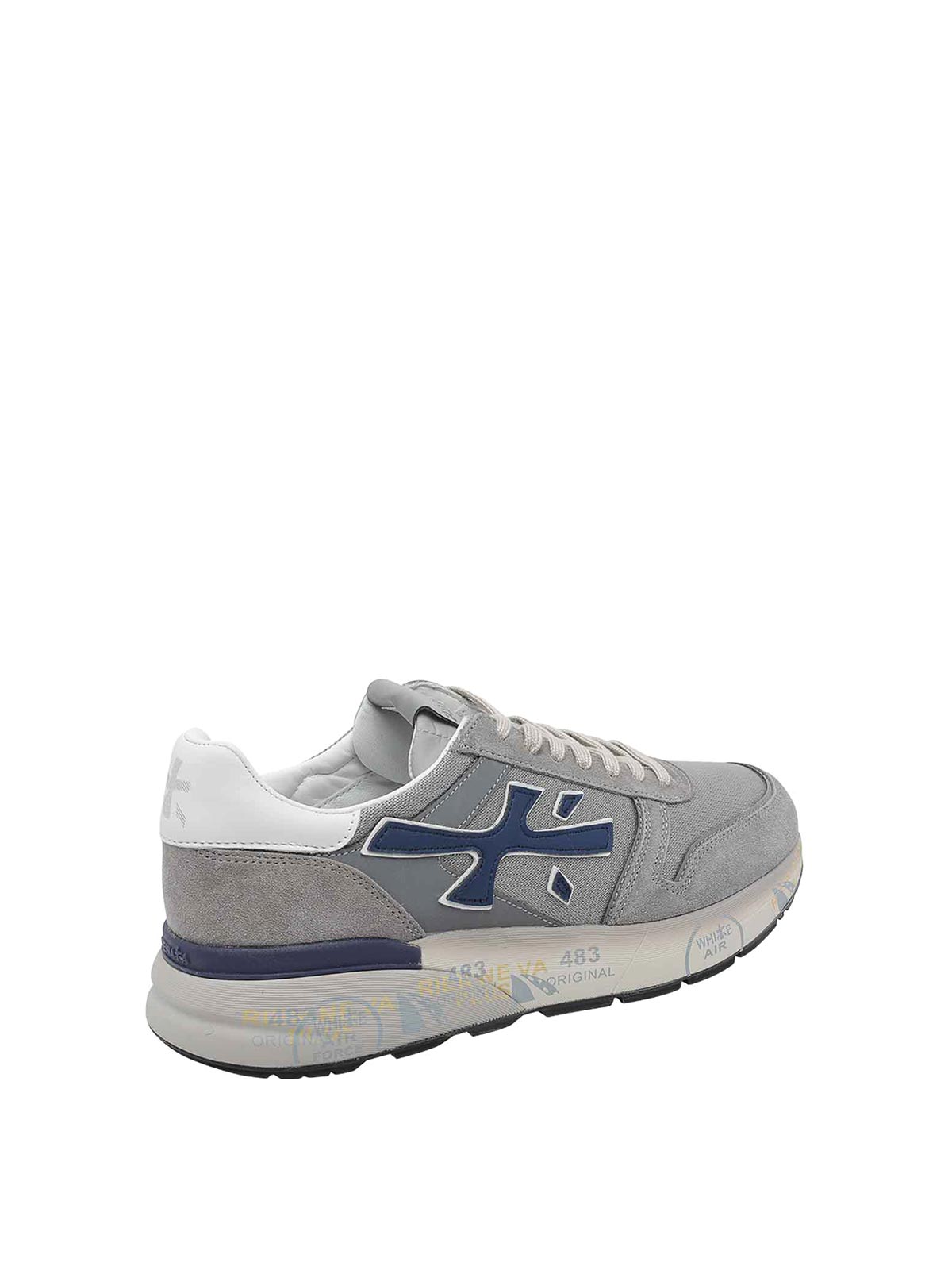 Premiata grey mick sneakers, round toe, lateral logo, laces closure