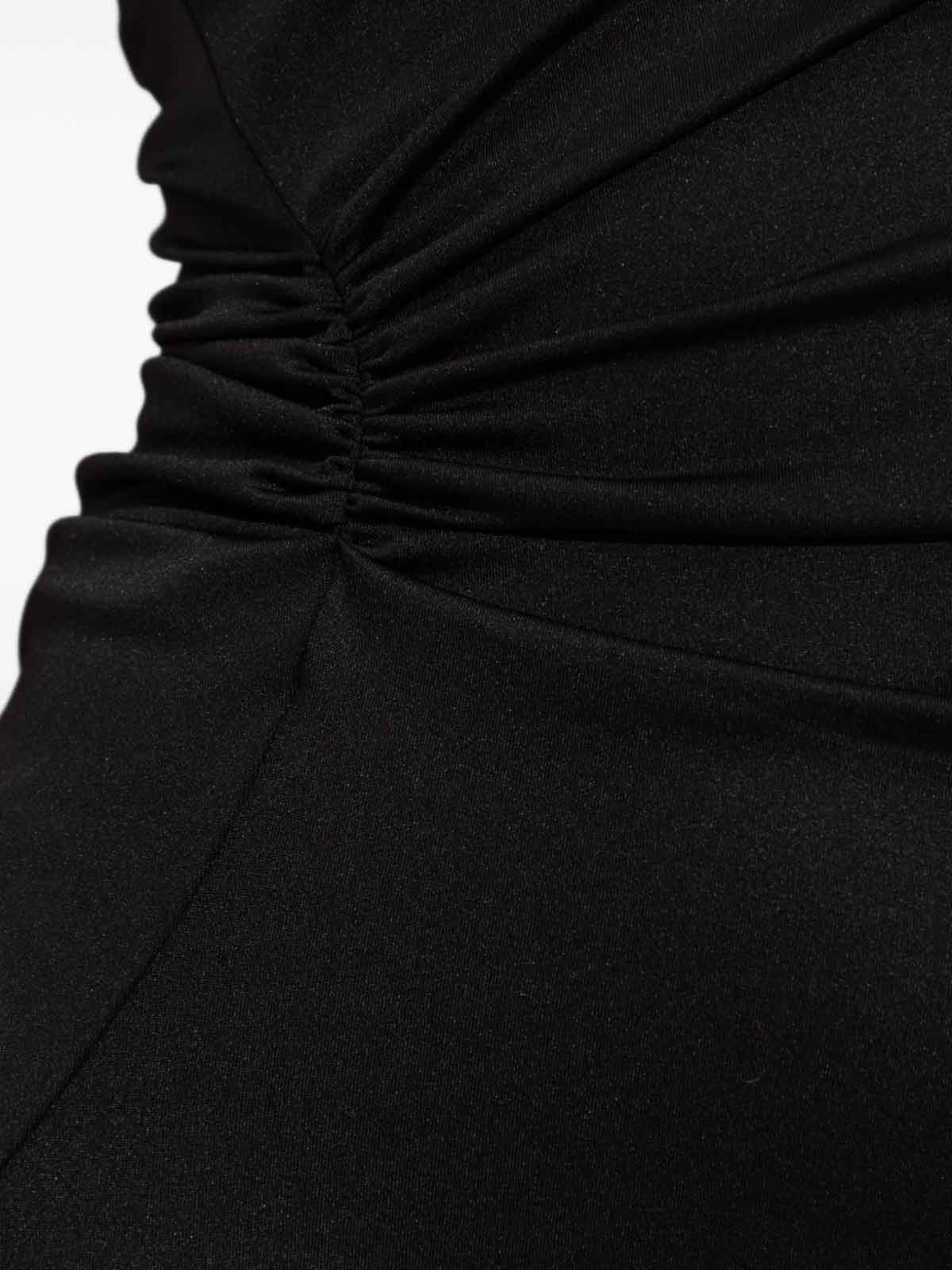 Black cap sleeves draped detailing asymmetrical hem fitted waist