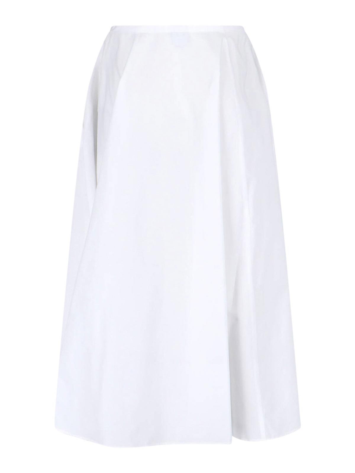 Aspesi midi skirt in white cotton, gathered design, medium waist, side zip closure, straight hem.