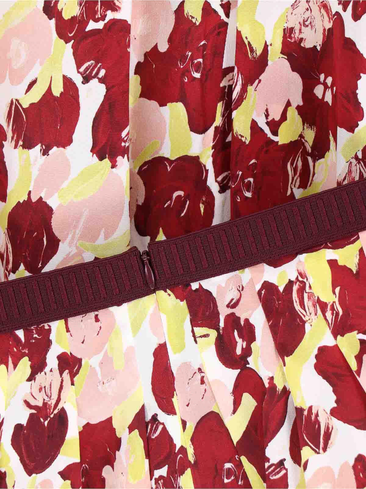 Marni secret bouquet midi skirt in multicolor silk, medium waist, back zip closure, all-over secret bouquet print.