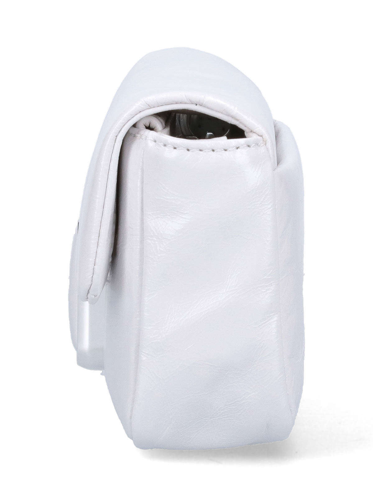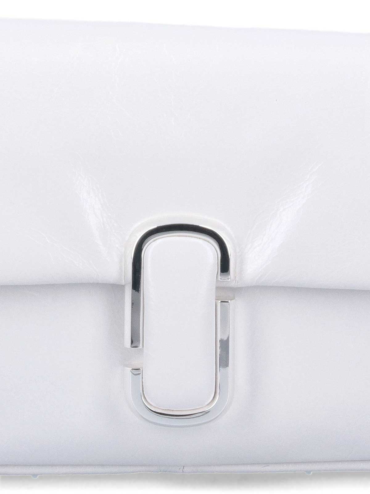 White the j marc marc jacobs mini bag one adjustable removable one removable silver chain front metal logo magnetic button one back flat pocket one main compartment