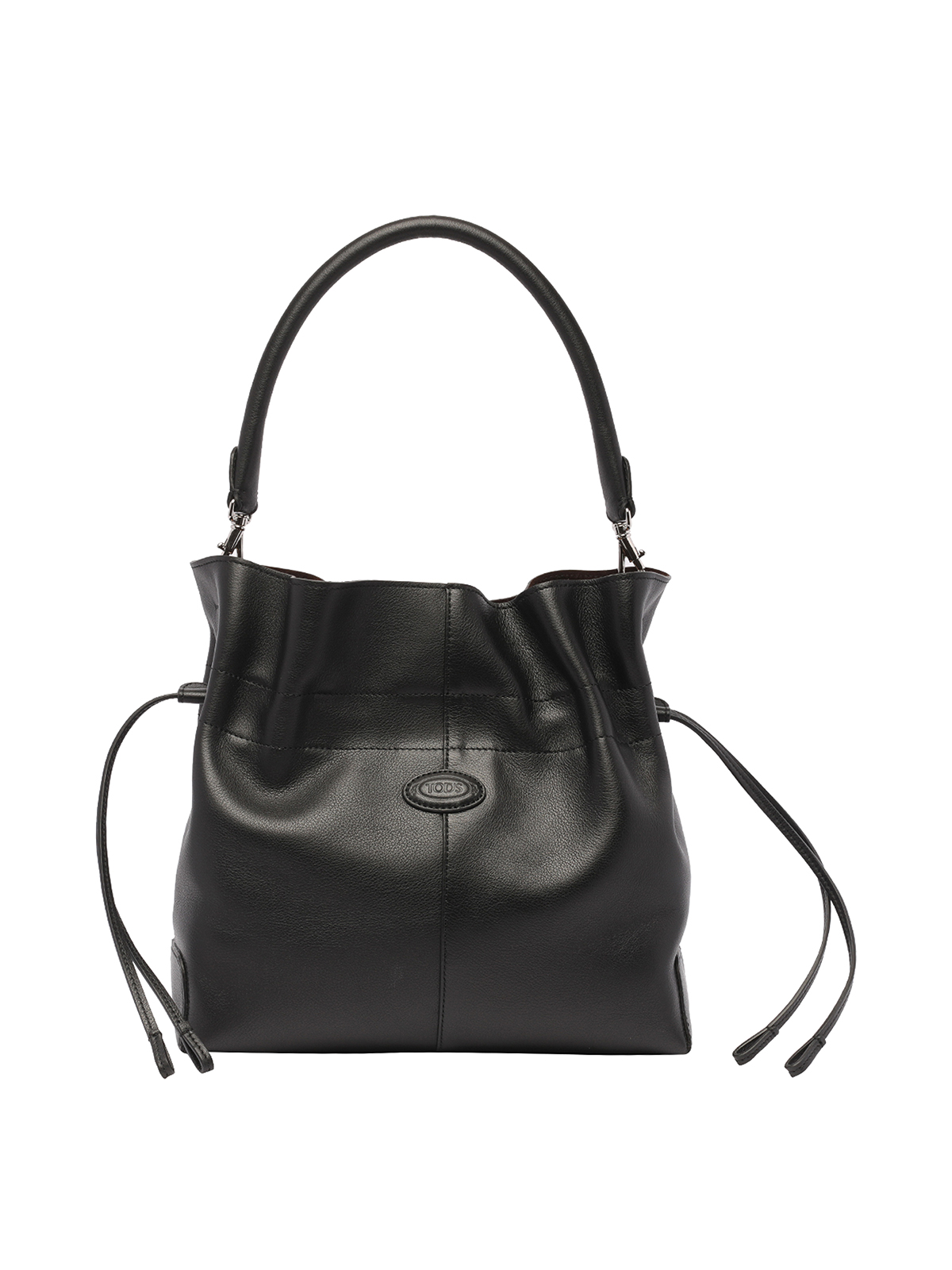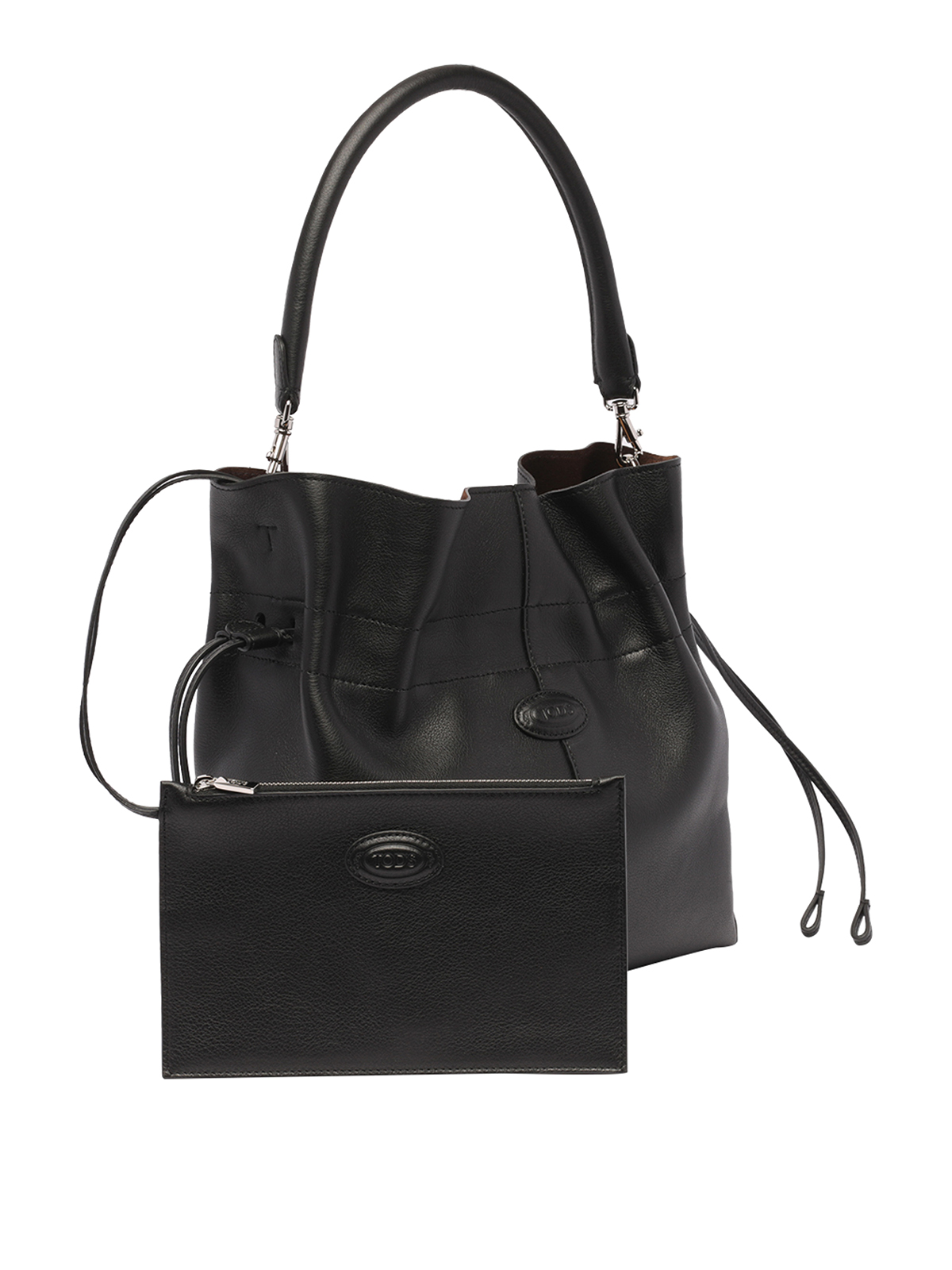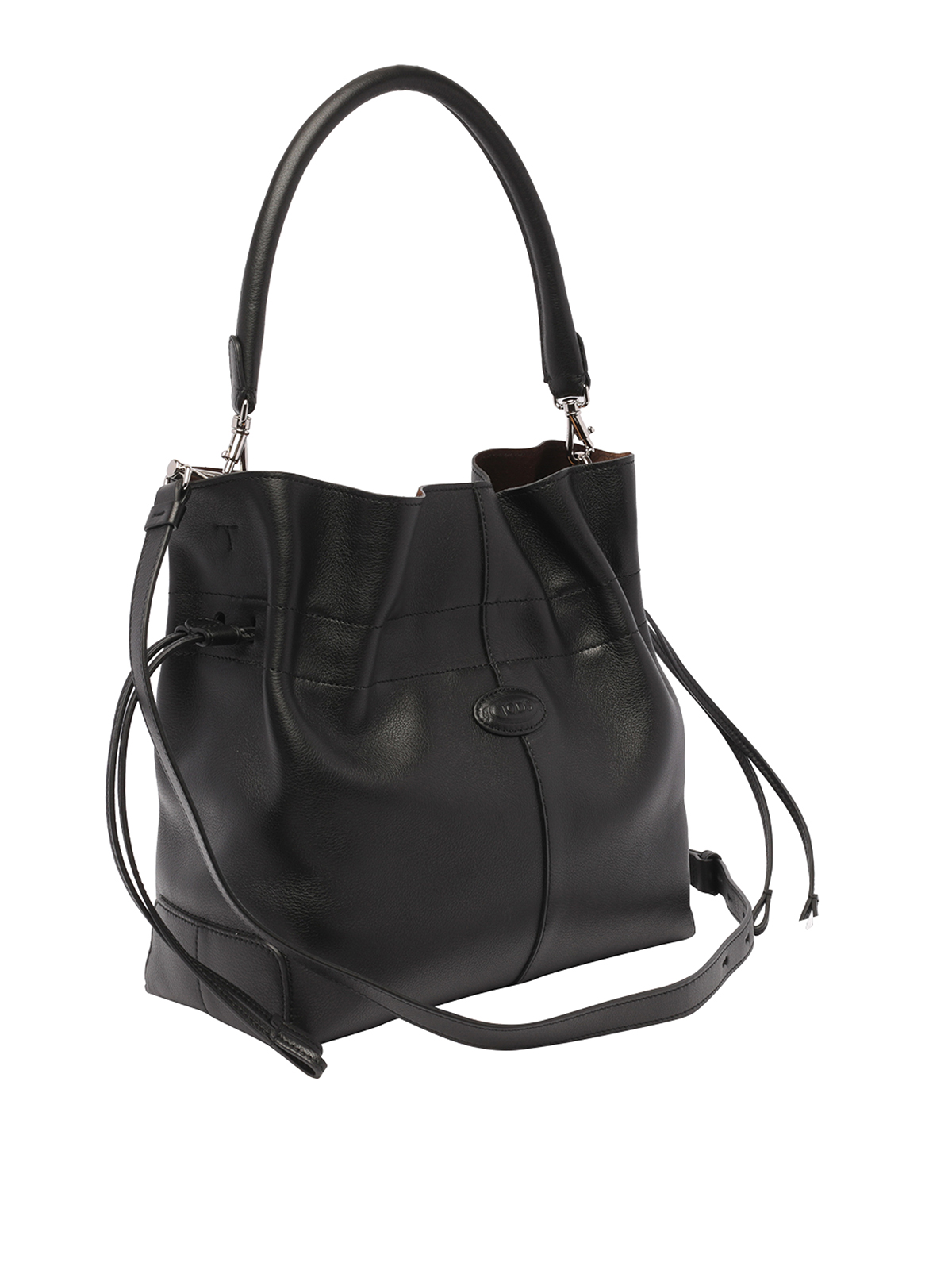 Tods black bucket bag coulisse closure inner pochette with coulisse closure removable handle logo