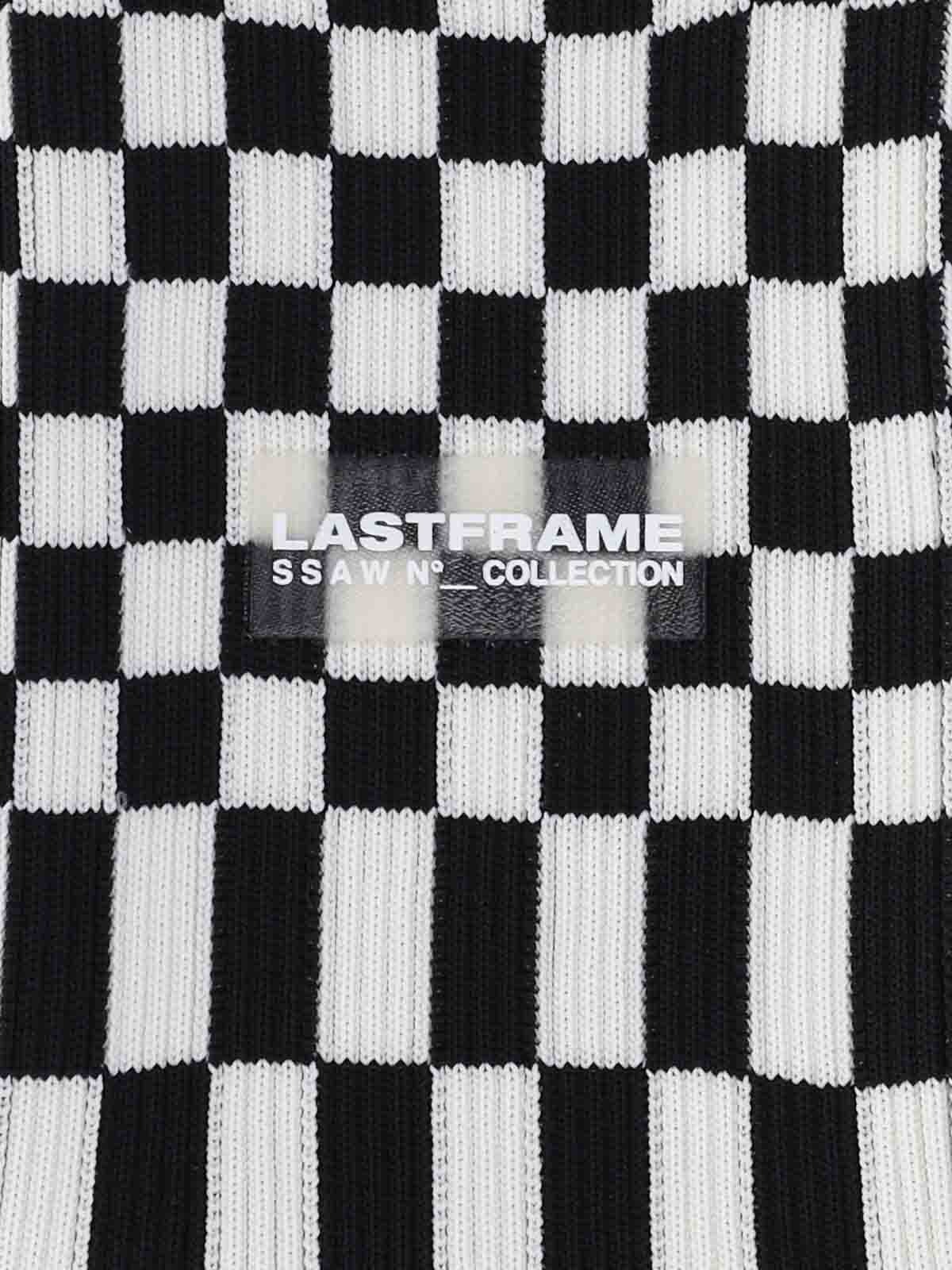 ichimatsu market last frame mini tote bag two-tone black and white checkered pattern one adjustable and removable front logo label one main compartment