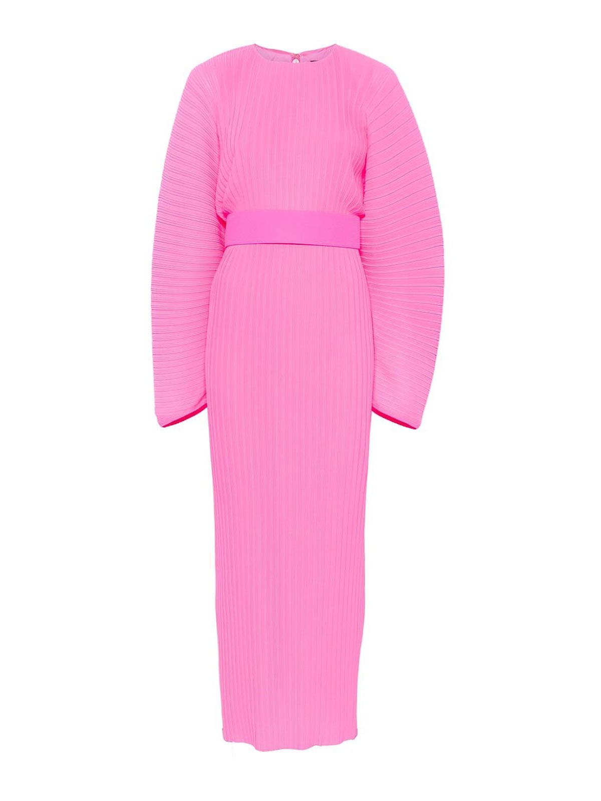 Hot pink concealed rear zip fastening detachable and adjustable waist belt pencil silhouette long raglan sleeves