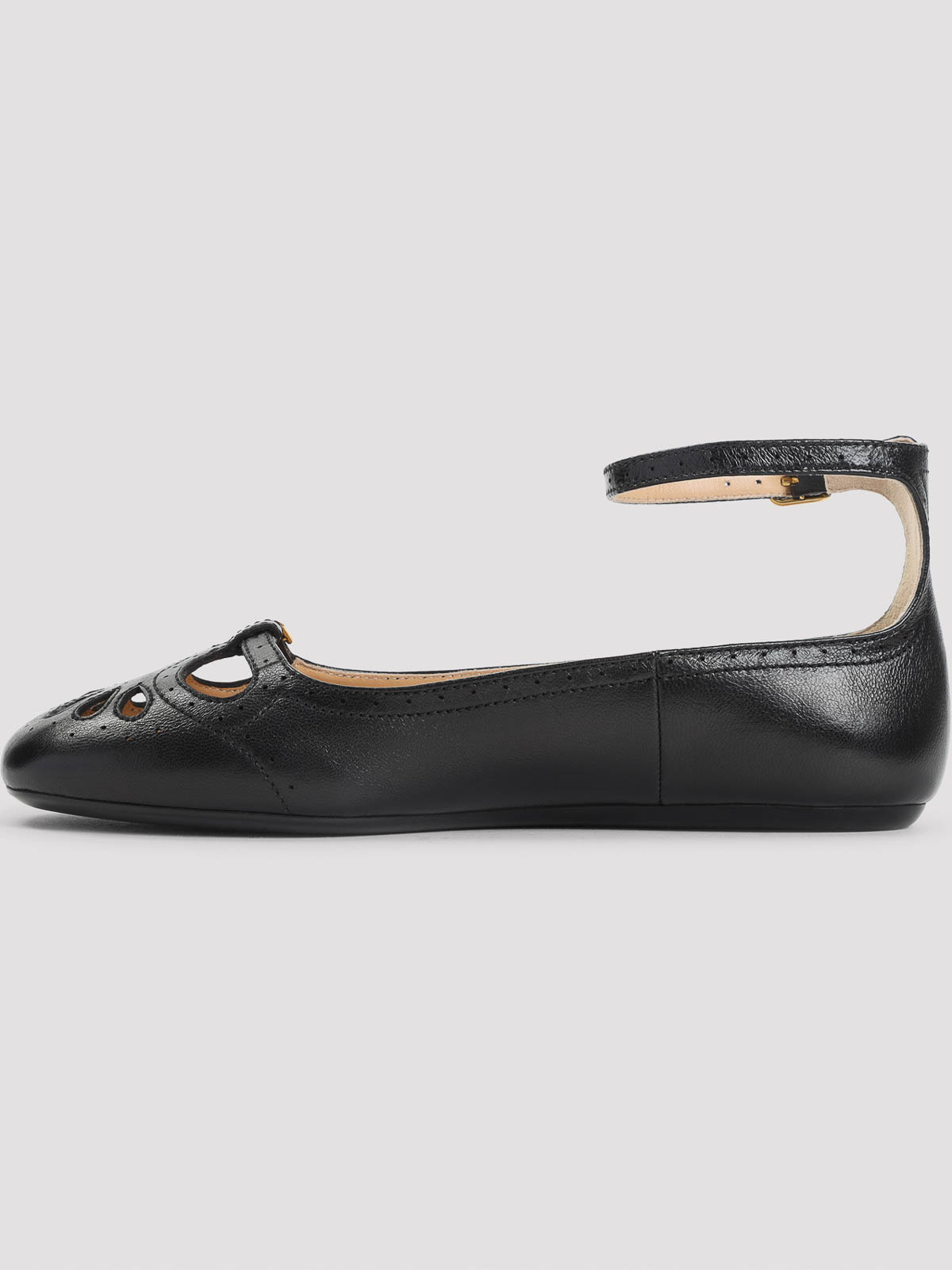 Chloe black misty ballerinas pure black ballerinas round toe top cut, out top adjustable tonal strap ankle adjustable strap flat design tonal, tone hardware