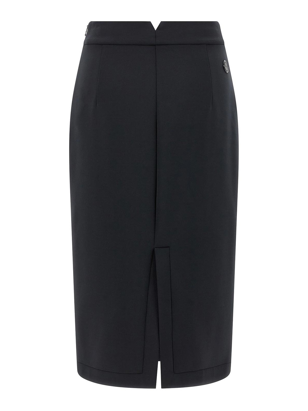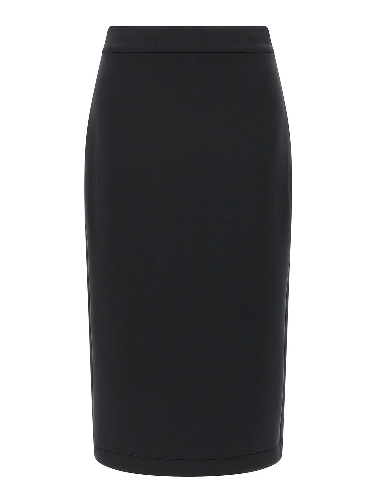 Moncler x edward enninful midi skirt in unlined scuba-effect fabric with longuette model, tone-on-tone logo patch, split and back pince, and side zip closure.