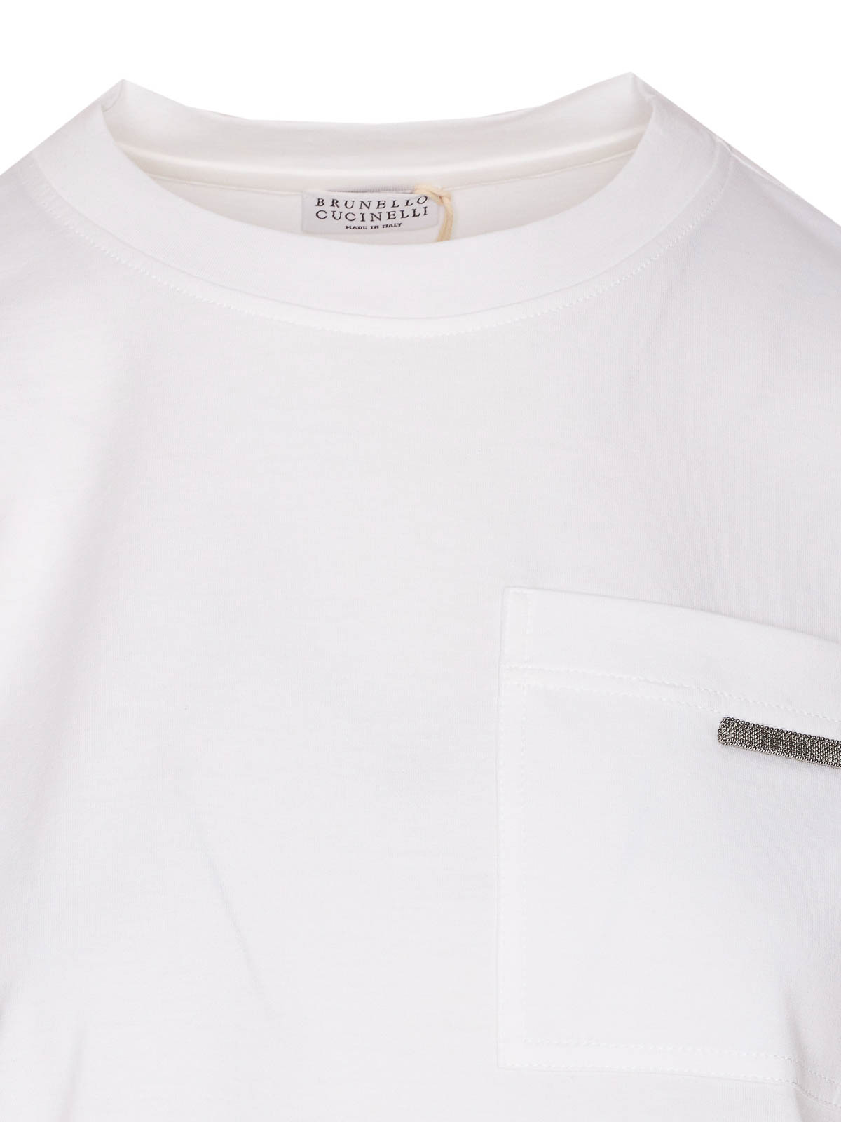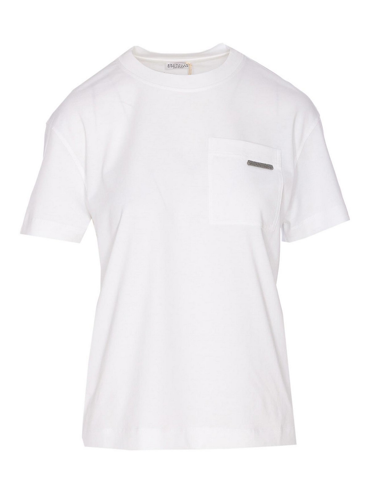 Brunello cucinelli white t-shirt, crewneck, with monile detail on pocket