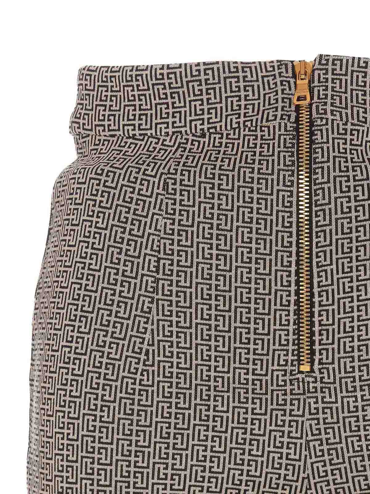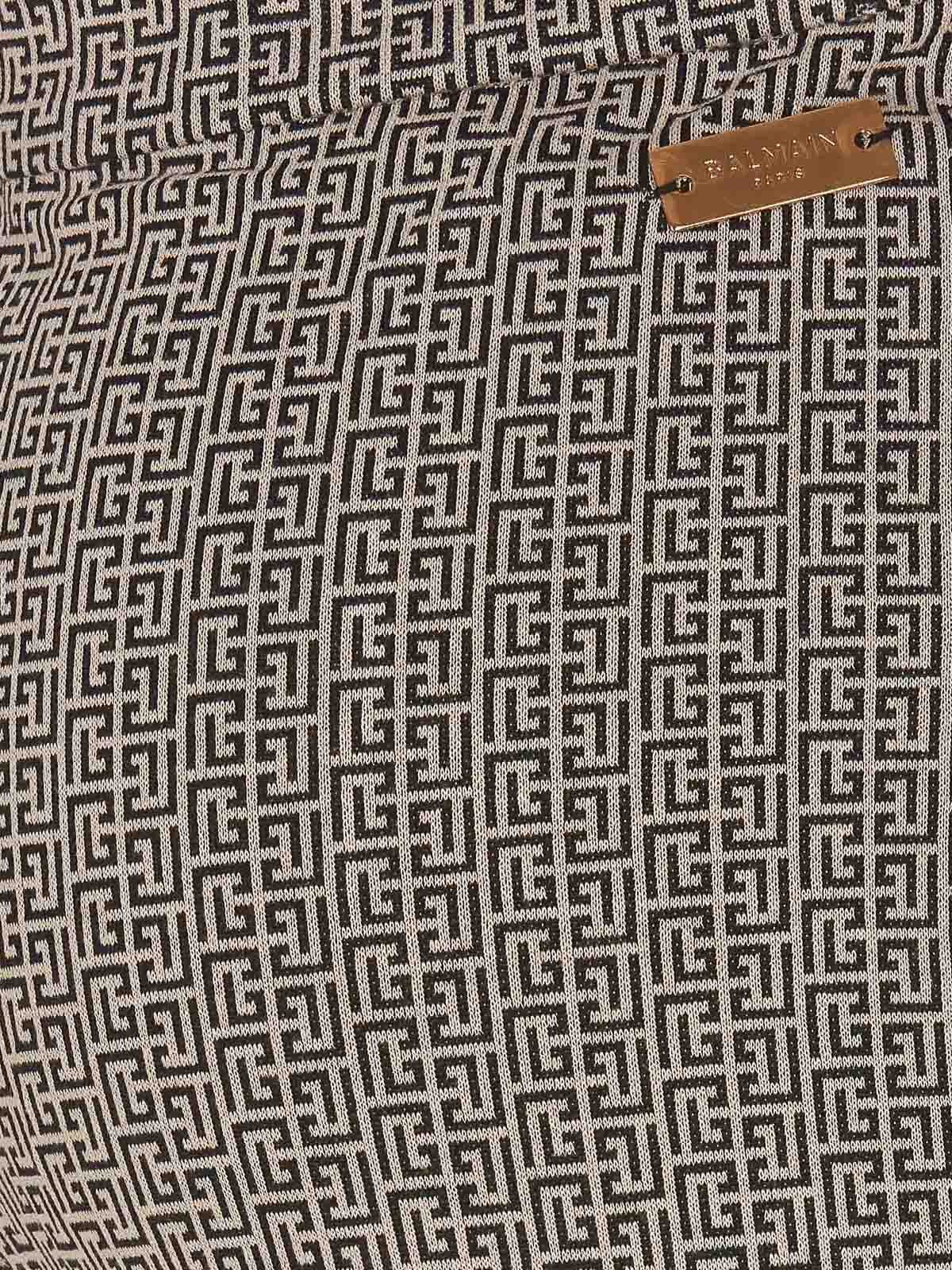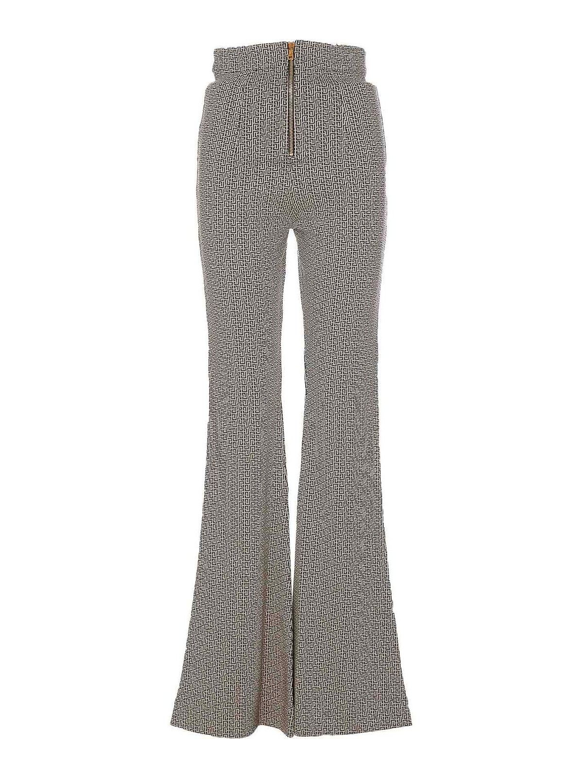 Bamain beige and black monogram logo pants zip closure with logo on the back monogram logo all over tight model