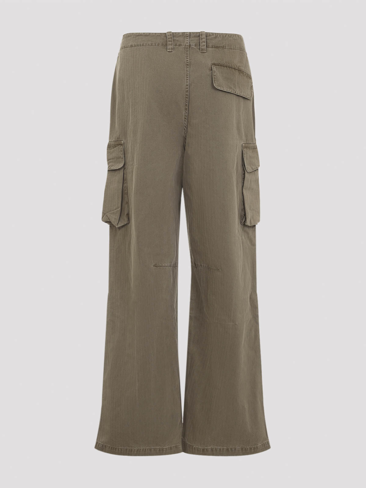 Our legacy mount cargo green cotton pants. crafted from japanese green cotton, featuring belt loops, front button and zip-fly fastening, side pockets, two cargo pockets, darted knees, a single pocket on the back, and a straight relaxed leg.
