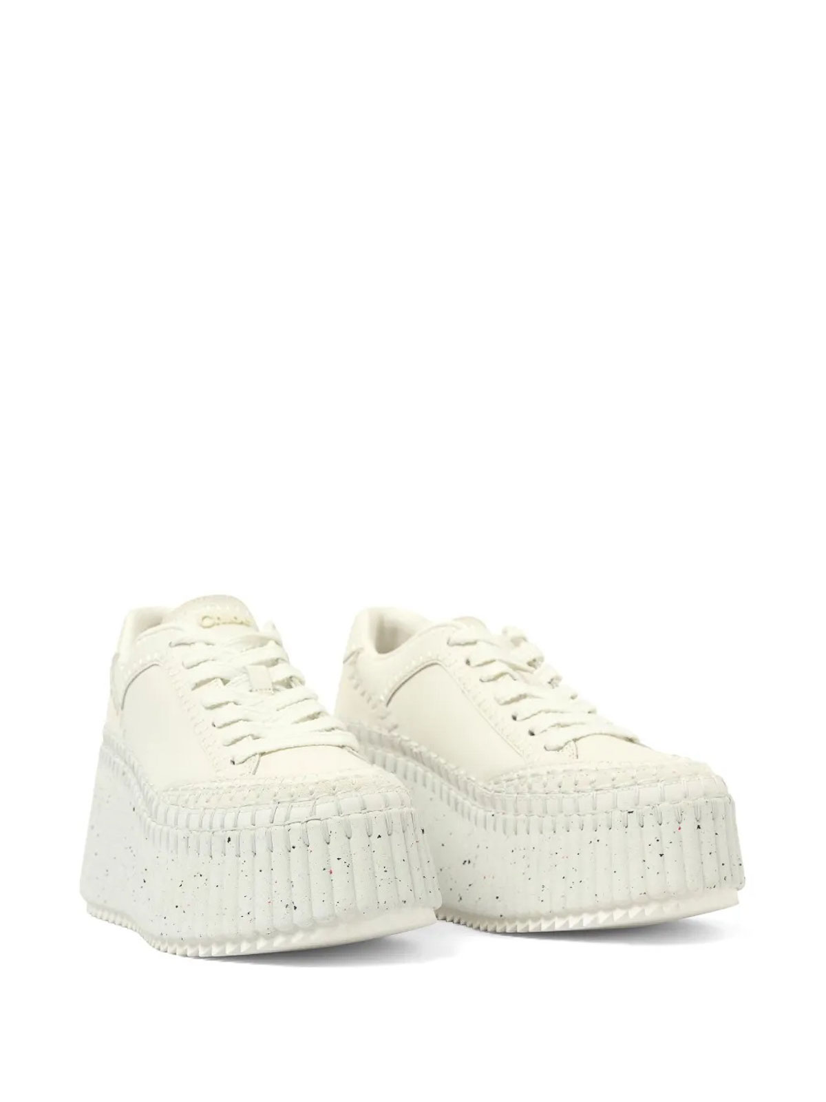designer color: soft powder, white, front lace-up fastening, wedge heel, logo-embroidered tongue, round toe