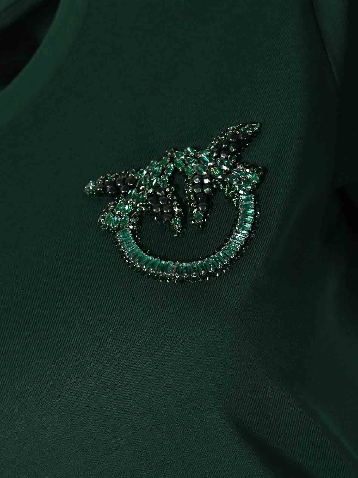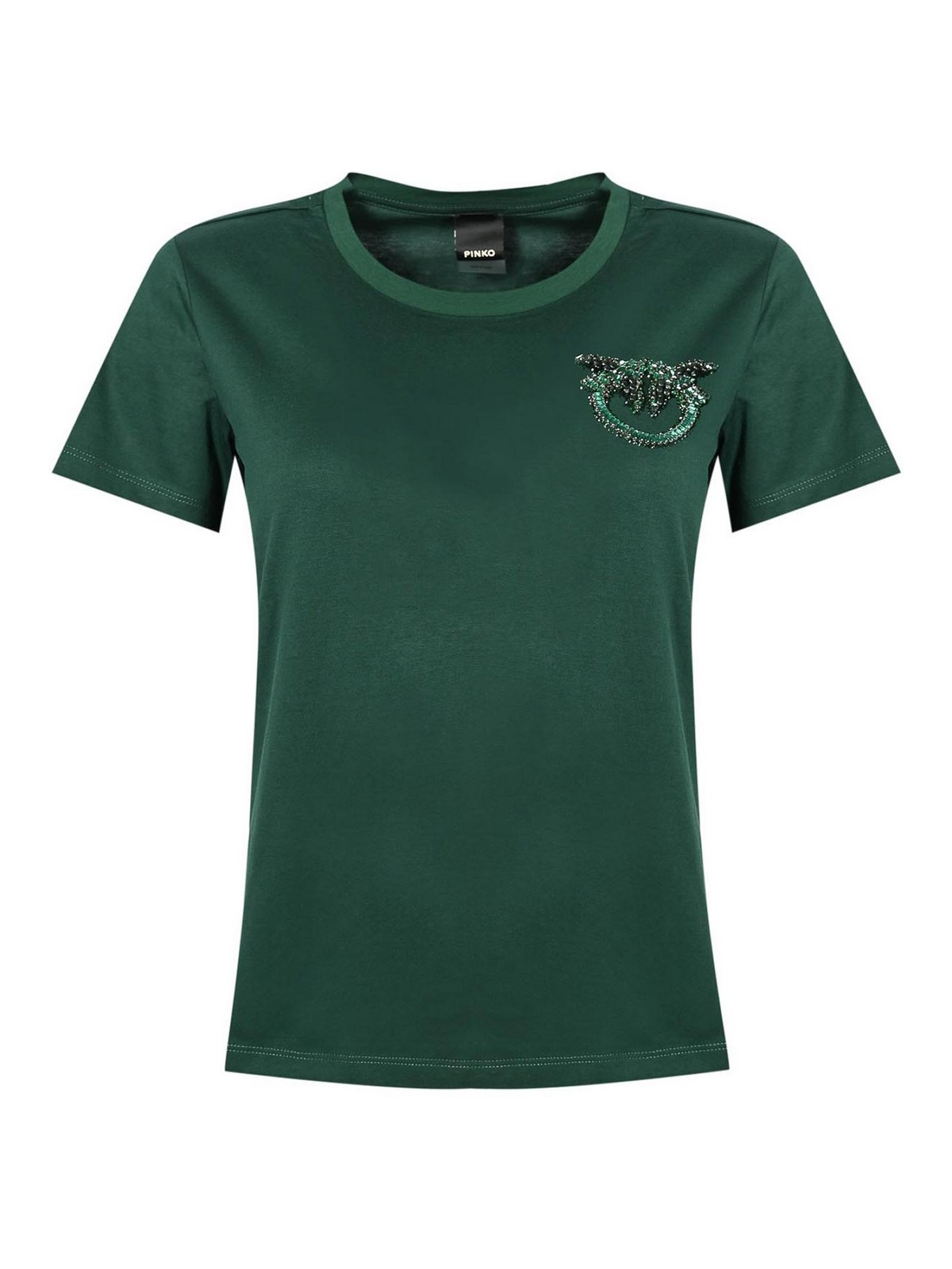 Pinko: t-shirts - Nambrone Cotton T-Shirt With Jewel Embroidery