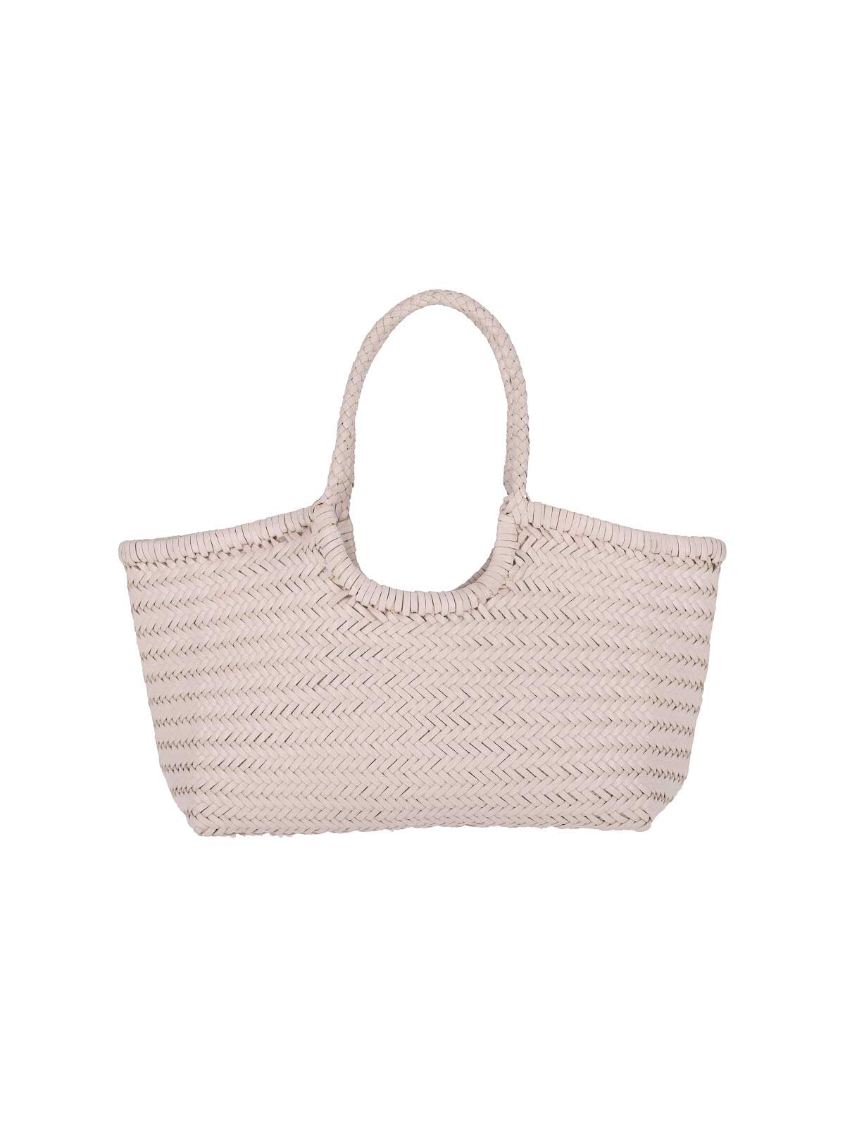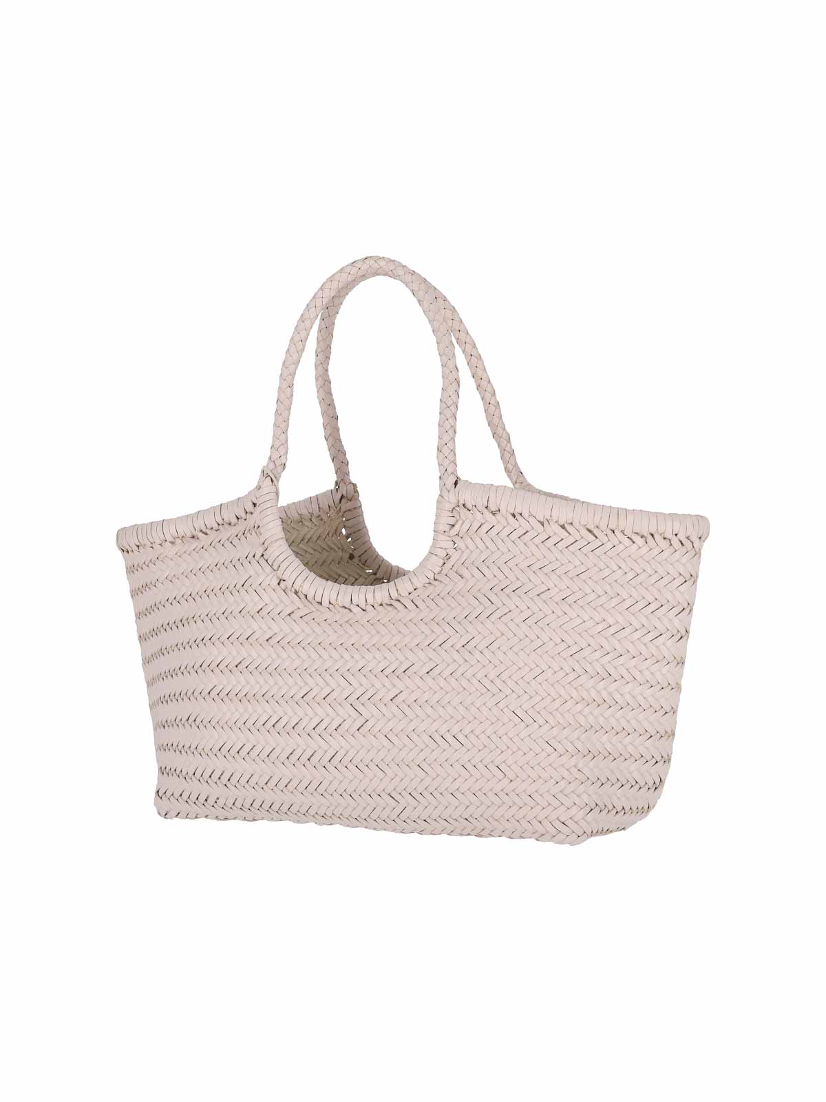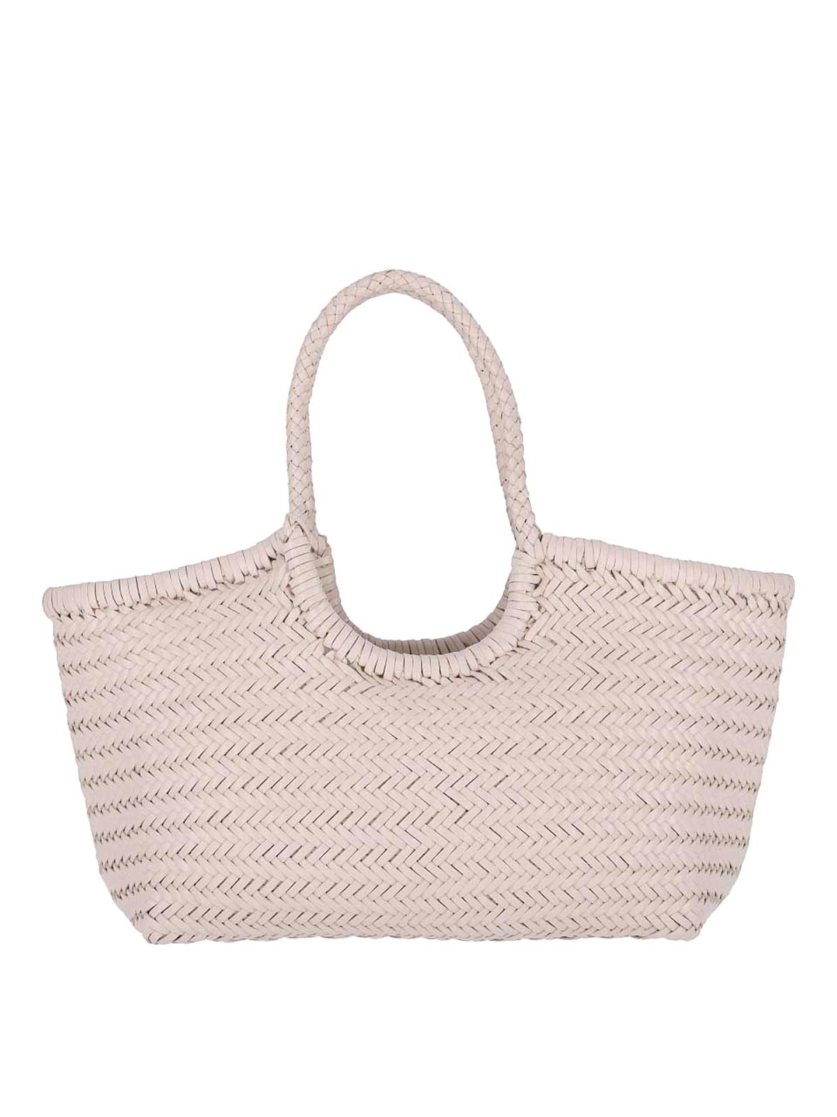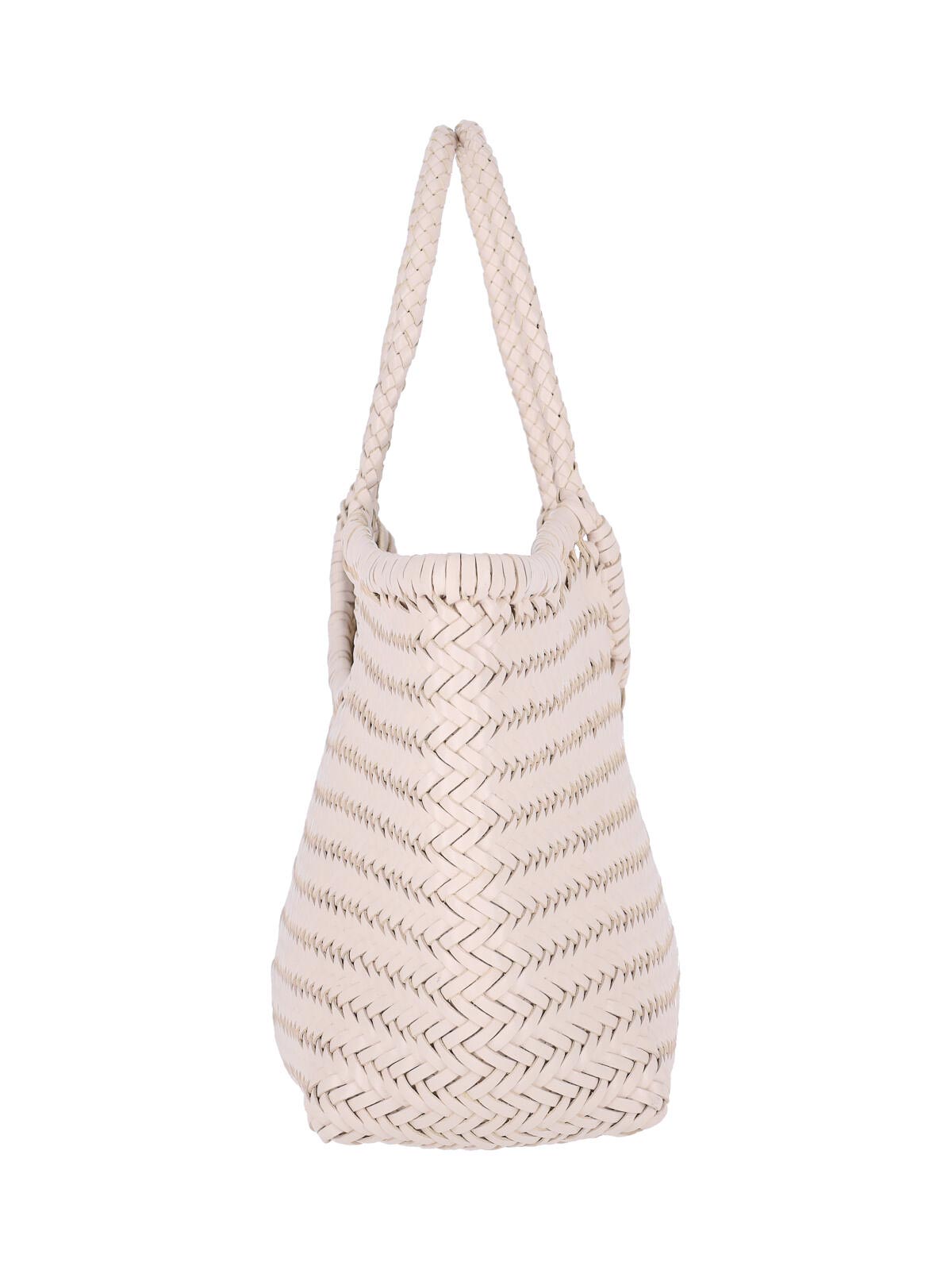Nantucket dragon diffusion large shoulder bag, in cream woven leather, two top handles, one internal compartment.