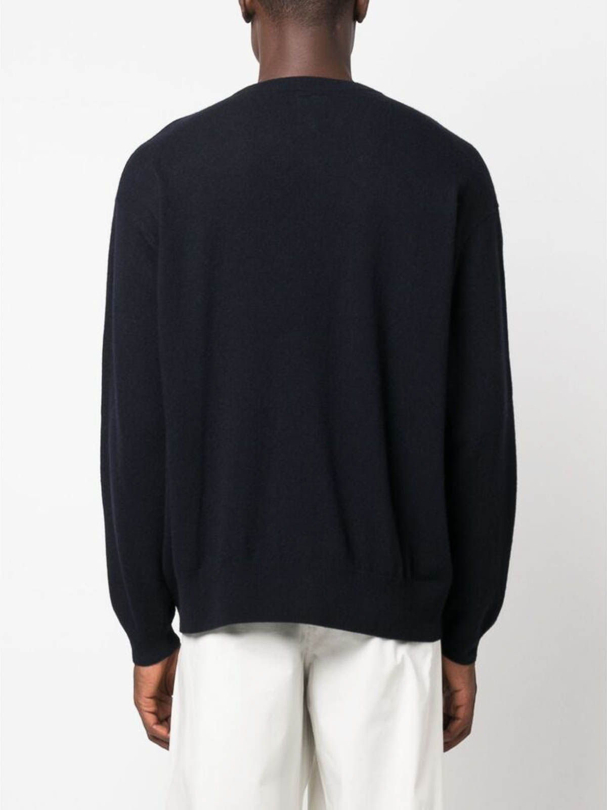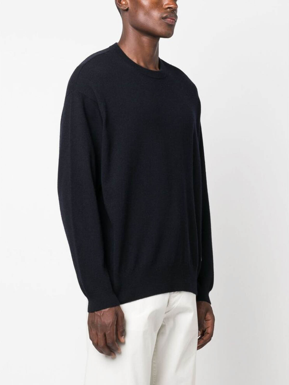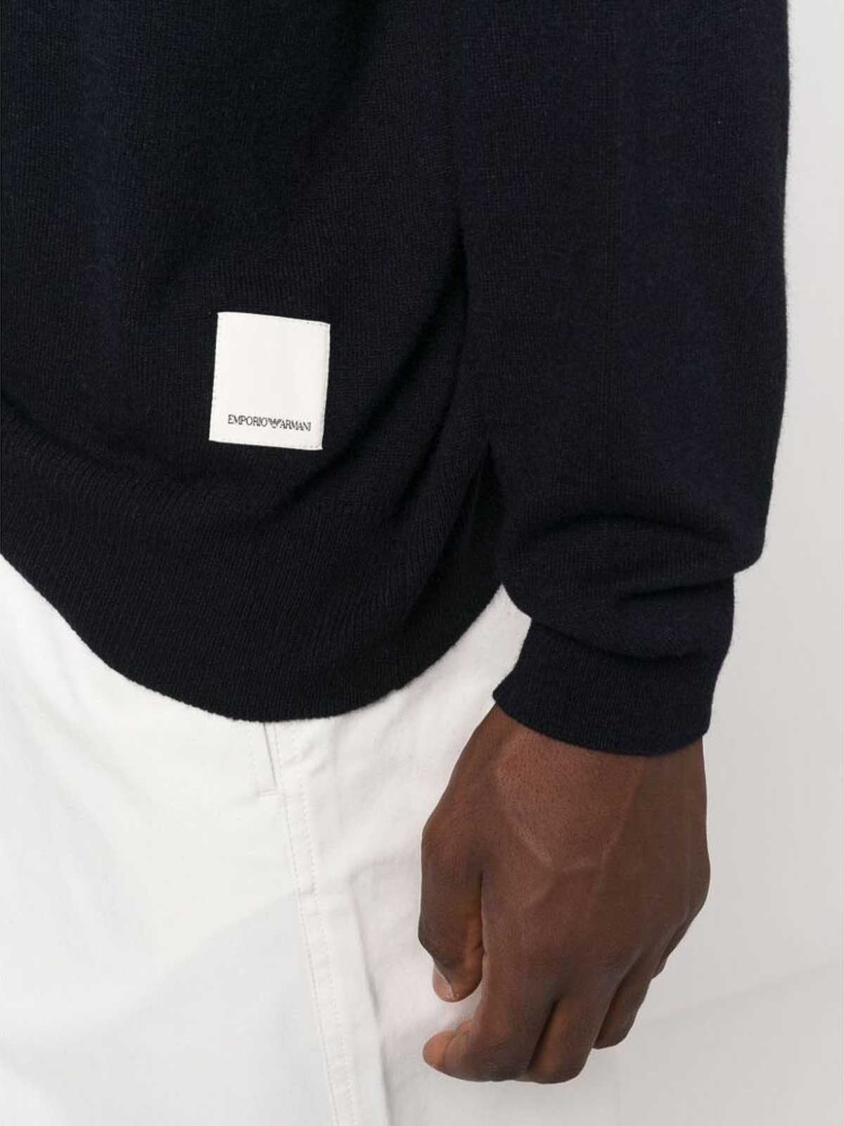 EMPORIO ARMANI: crew necks - Navy logo-patch fine-knit jumper