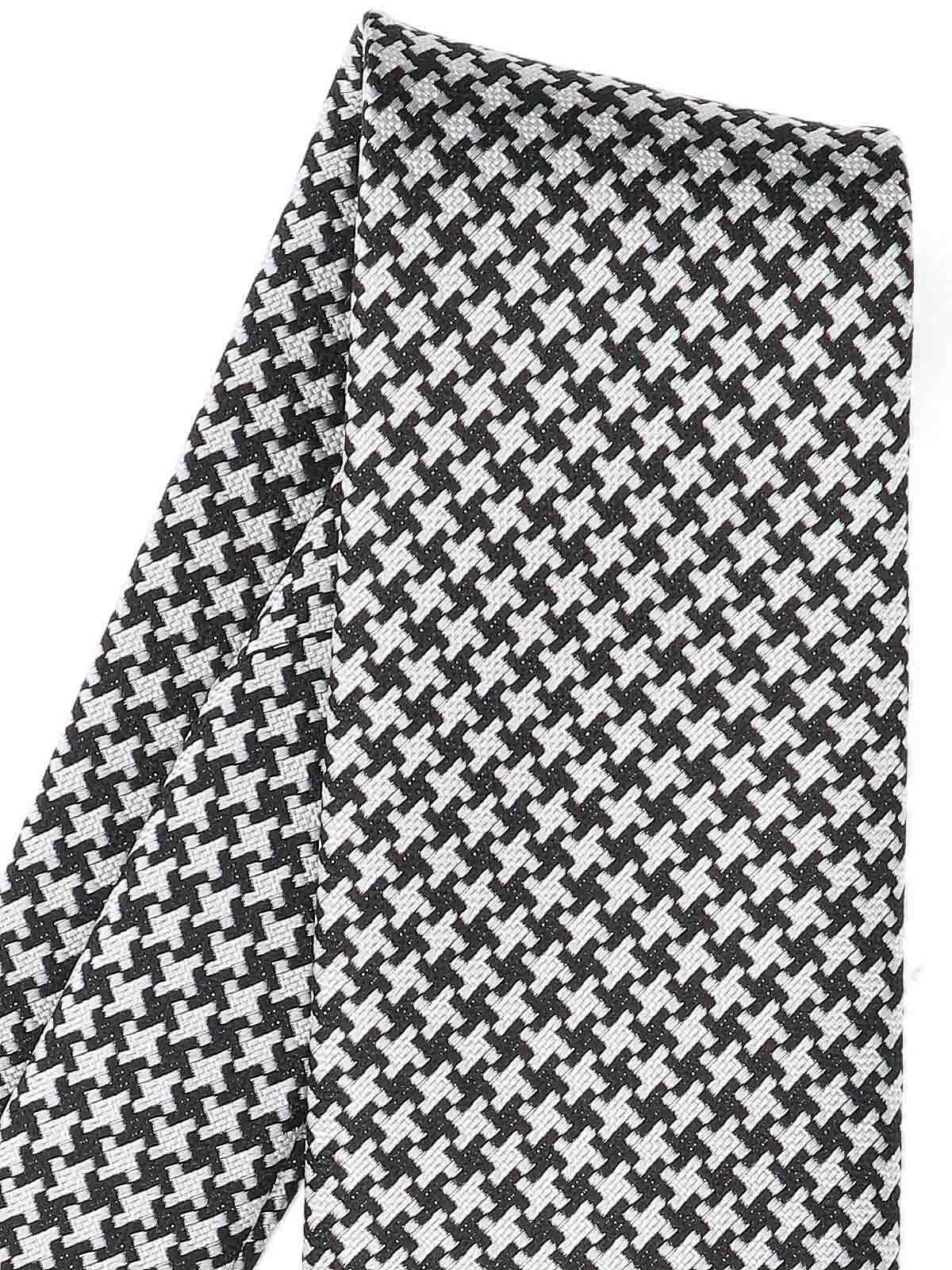 Prince of Wales Tom Ford tie, in black and white mulberry silk, houndstooth pattern, adjustable.