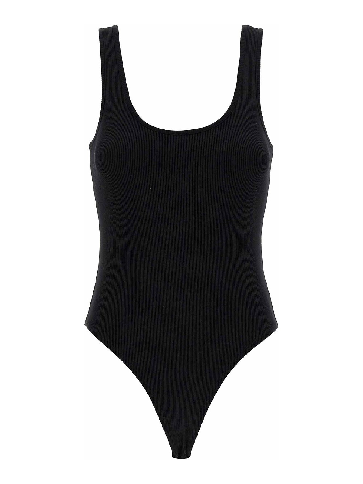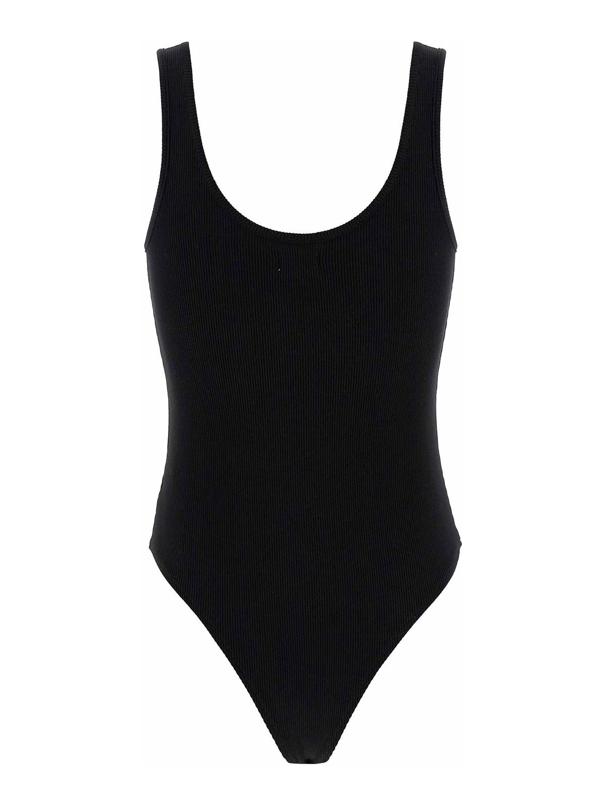 nica' sleeveless bodysuit in premium stretch cotton knit with wide round neckline at the front and back, snap buttons on the hem.