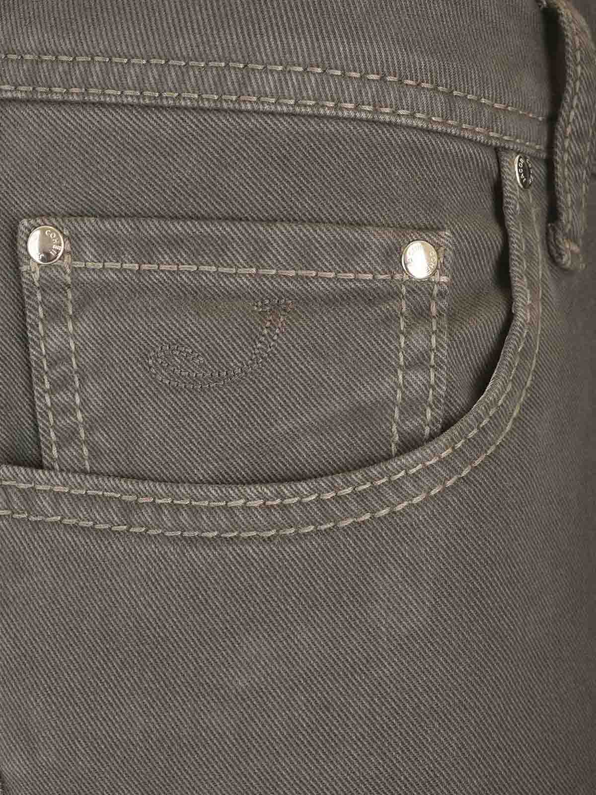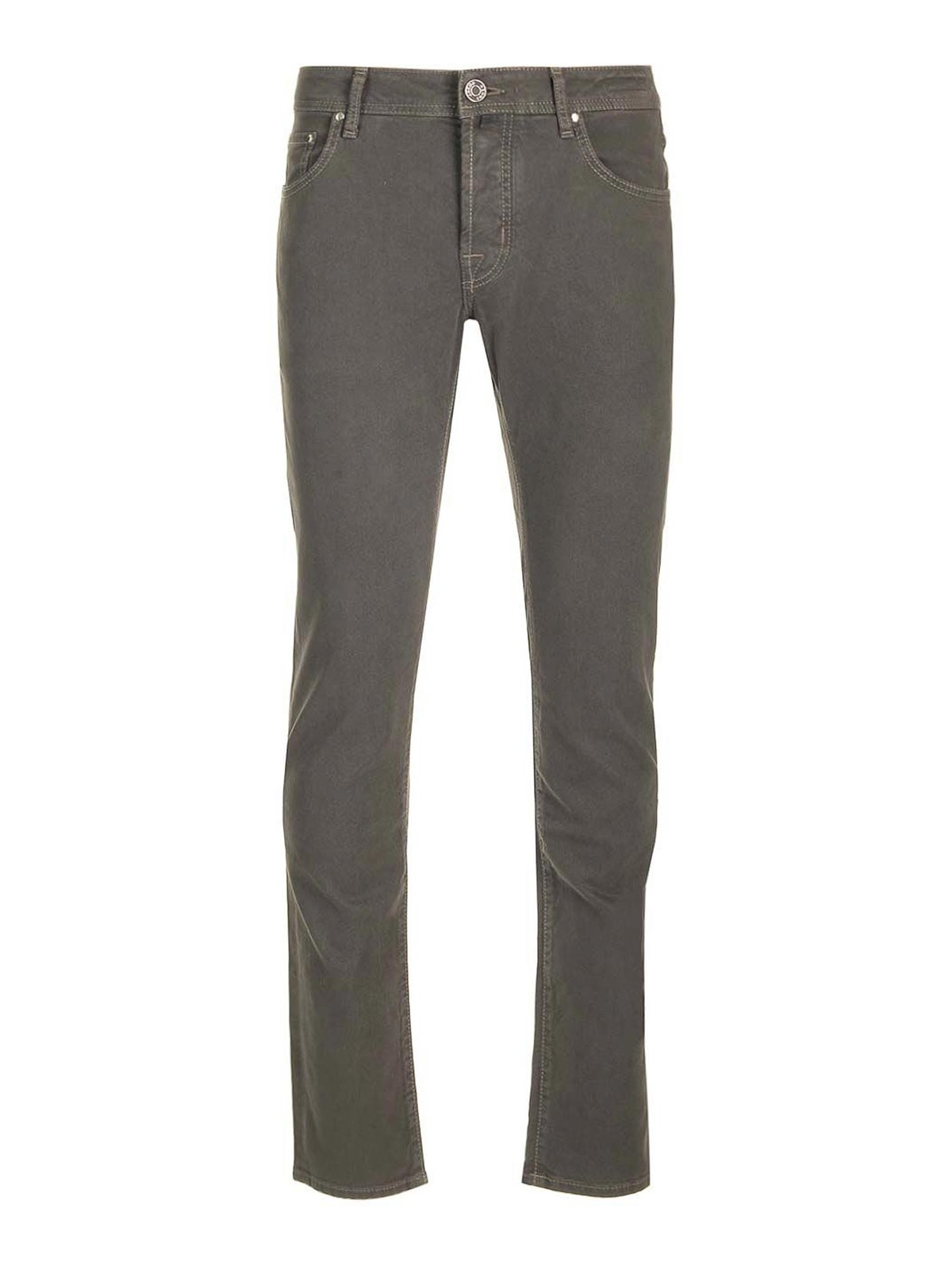 nick slim trousers by jacopb cohen in stretch cotton featuring a low waist, tone-on-tone stitching and logo embroidered on the pocket