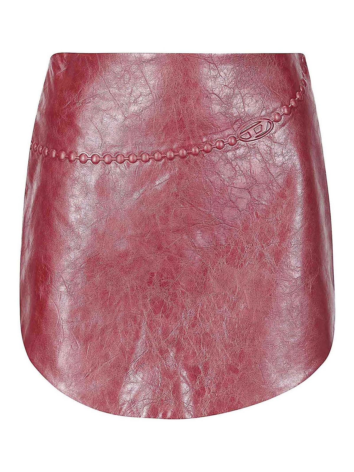 Asymmetric leather effect mini skirt, belt effect front detail with diesel logo, side zip.