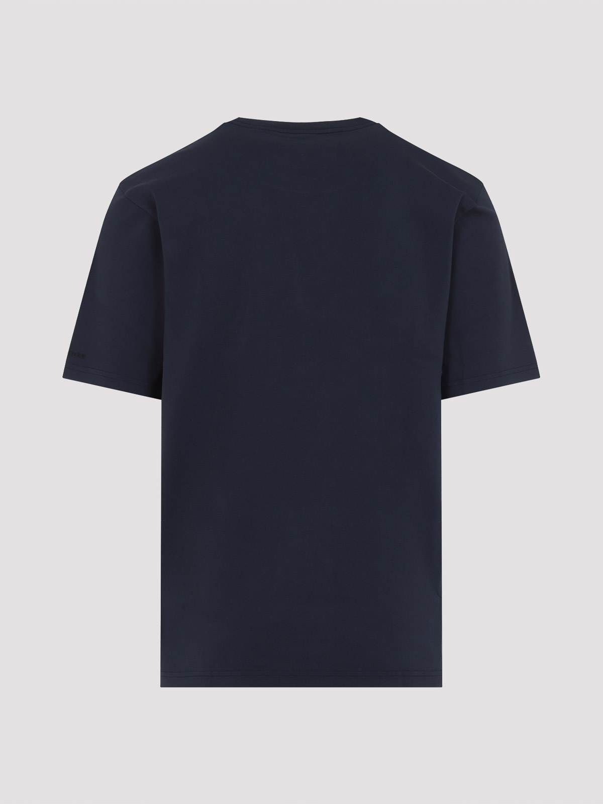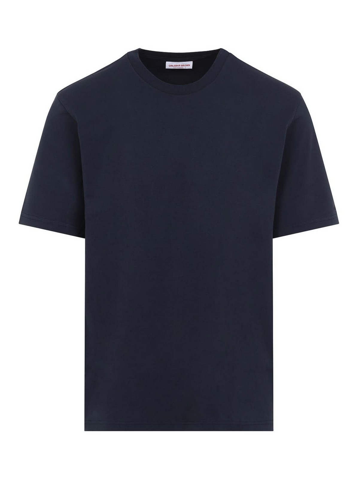 Orlebar brown ob standard blue cotton t-shirt. dark blue cotton jersey, round ribbed neckline, basic design, short sleeves, signature on the sleeve, straight hem, regular fit.